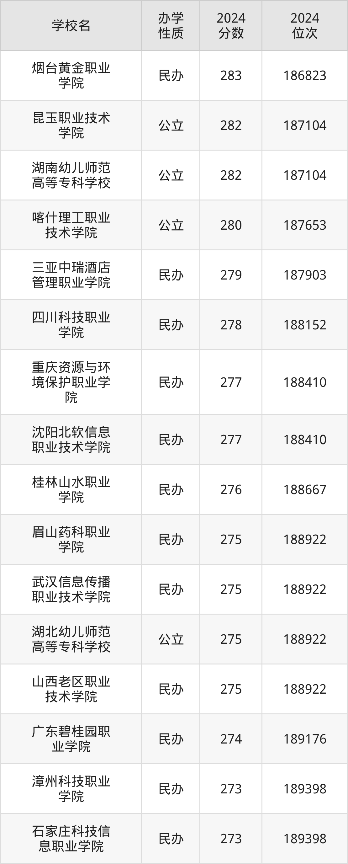 | 资阳环境科技 职业学院 | 282 | 293904 |