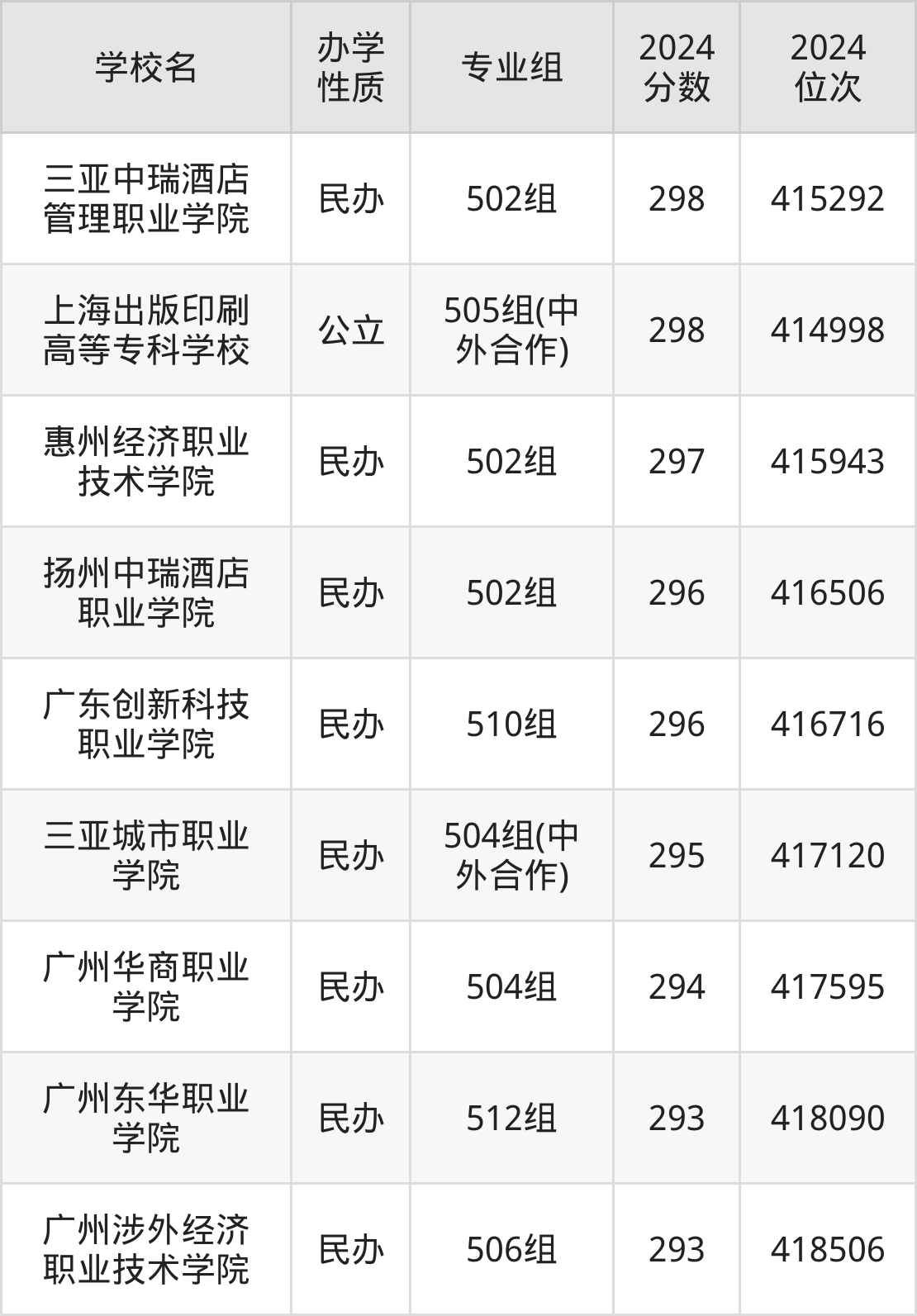 | 三亚中瑞酒店 管理职业学院 | 502组 | 298 | 415292 |