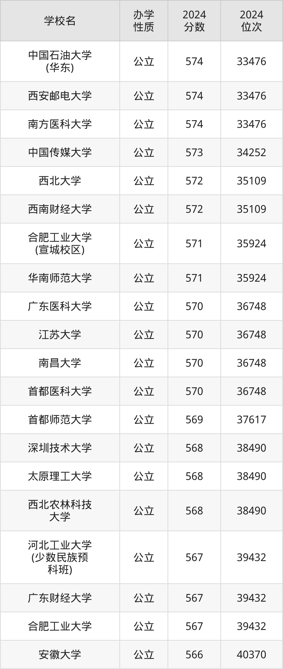 2024年河北物理类570分考生能上中国石油大学(华东)、中国传媒大学、西南财经大学、西北大学、华南师范大学等13所211院校,具体录取分数线及位次为: