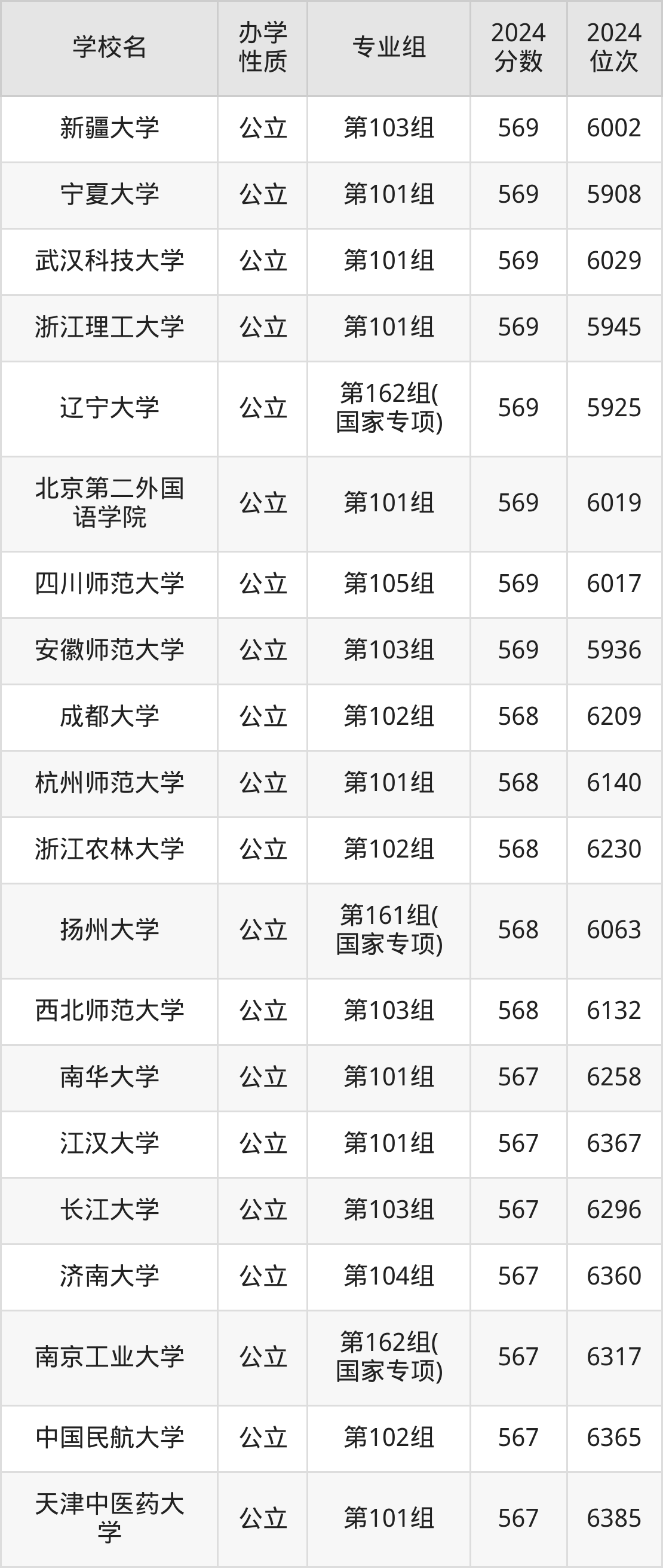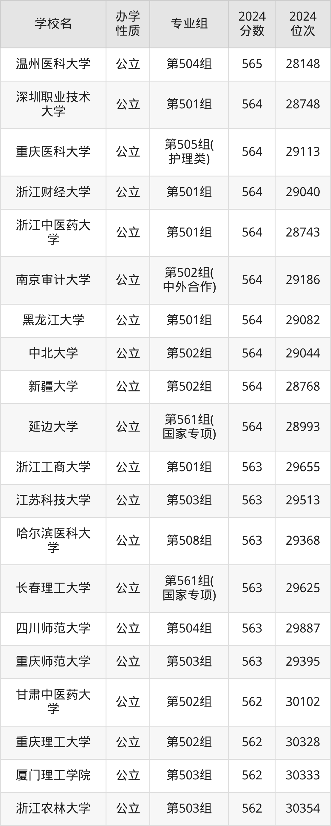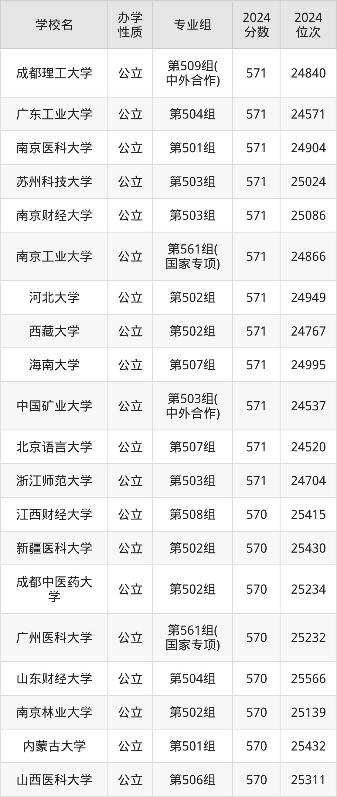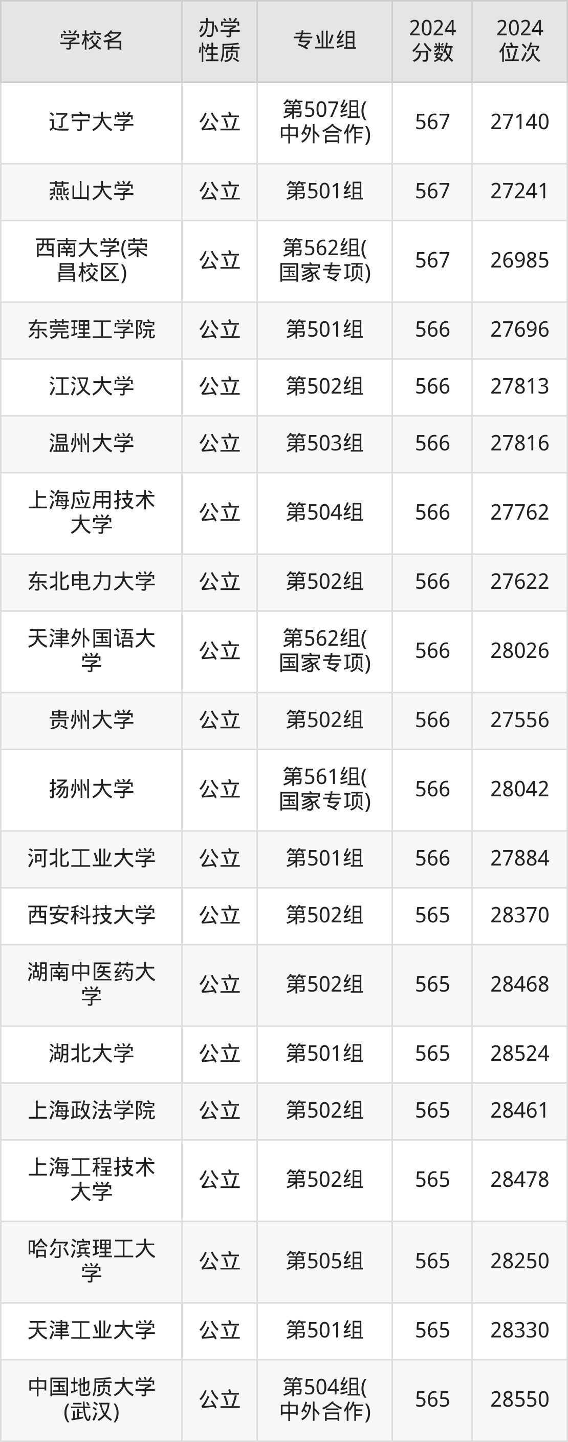| 学校名 | 专业组 | 2024 分数 | 2024 位次 |