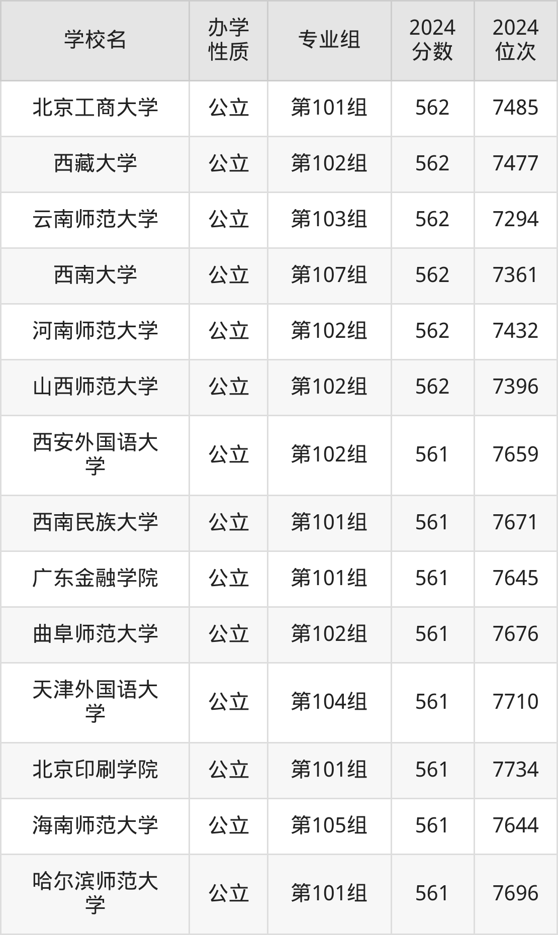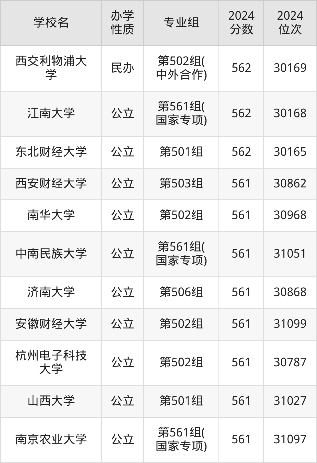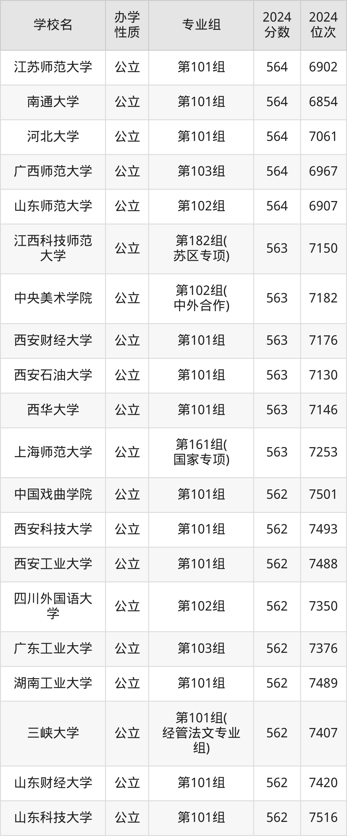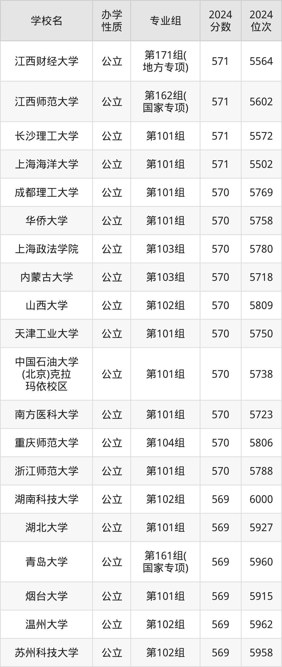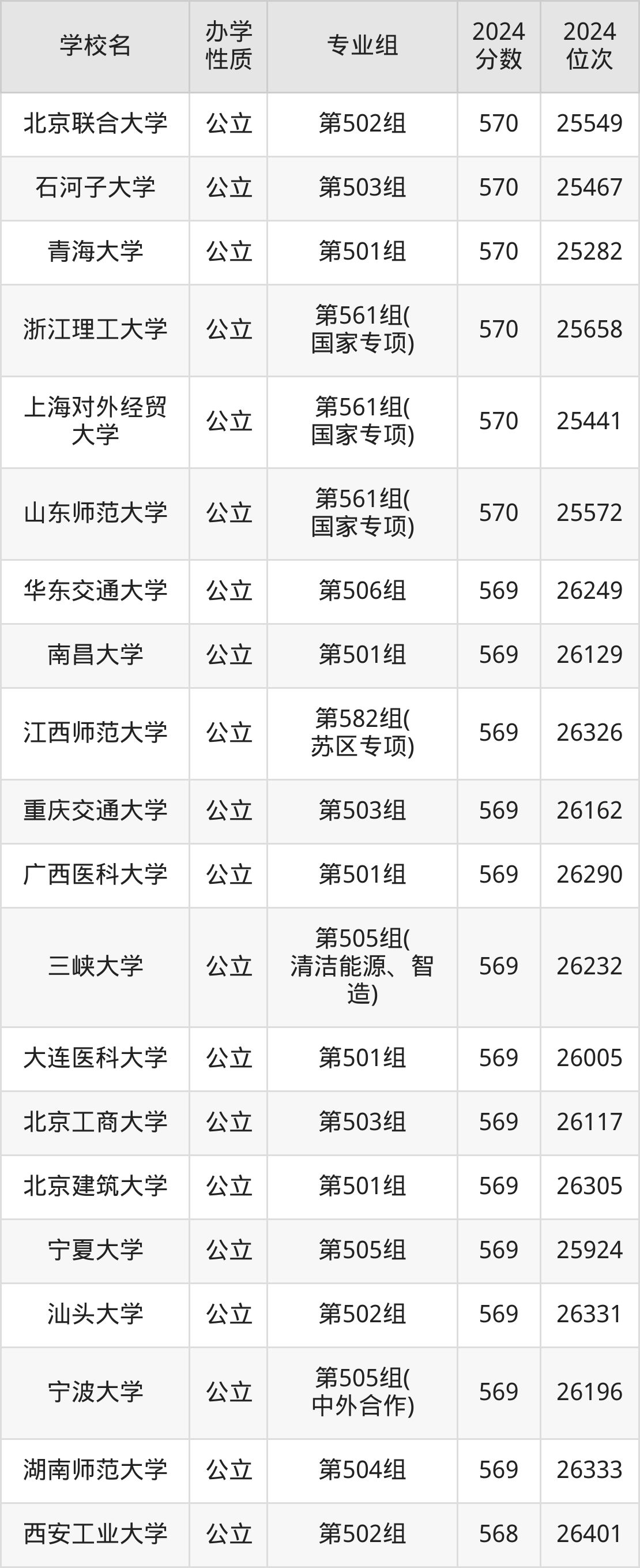 | 学校名 | 专业组 | 2024 分数 | 2024 位次 |
