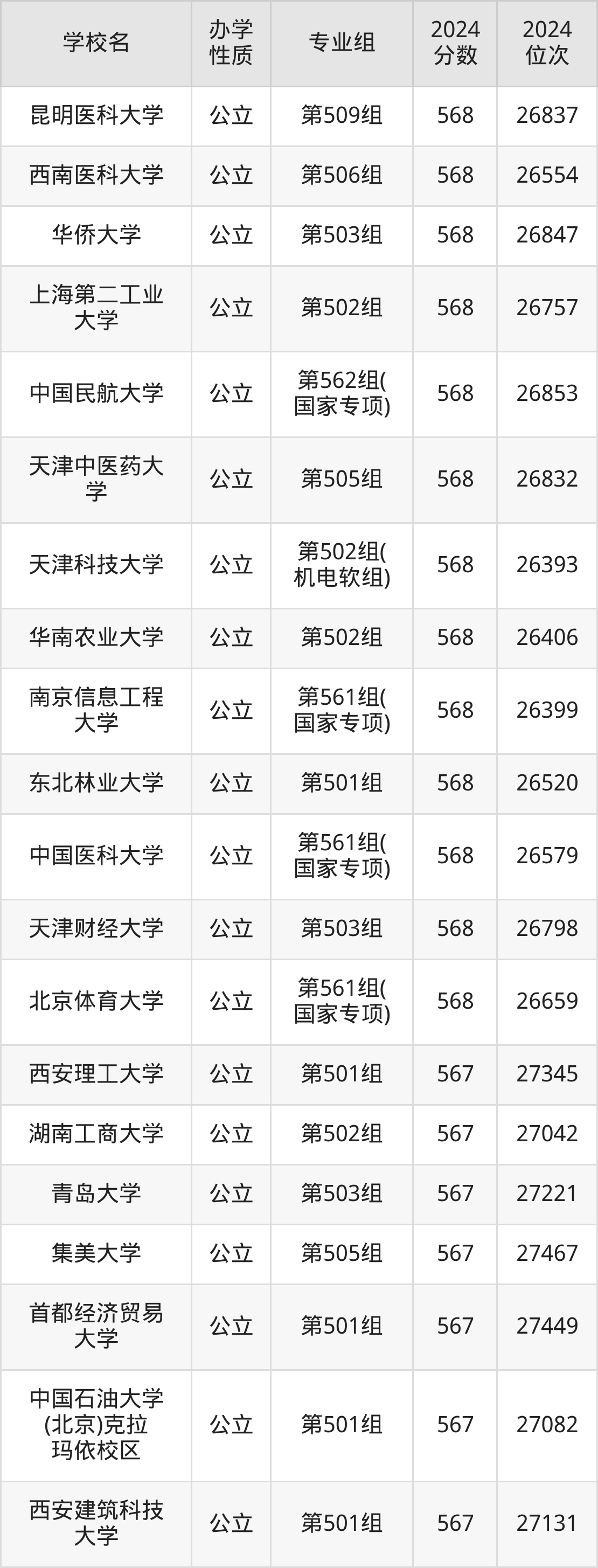 | 东北林业大学 | 第561组( 国家专项) | 563 | 29379 |