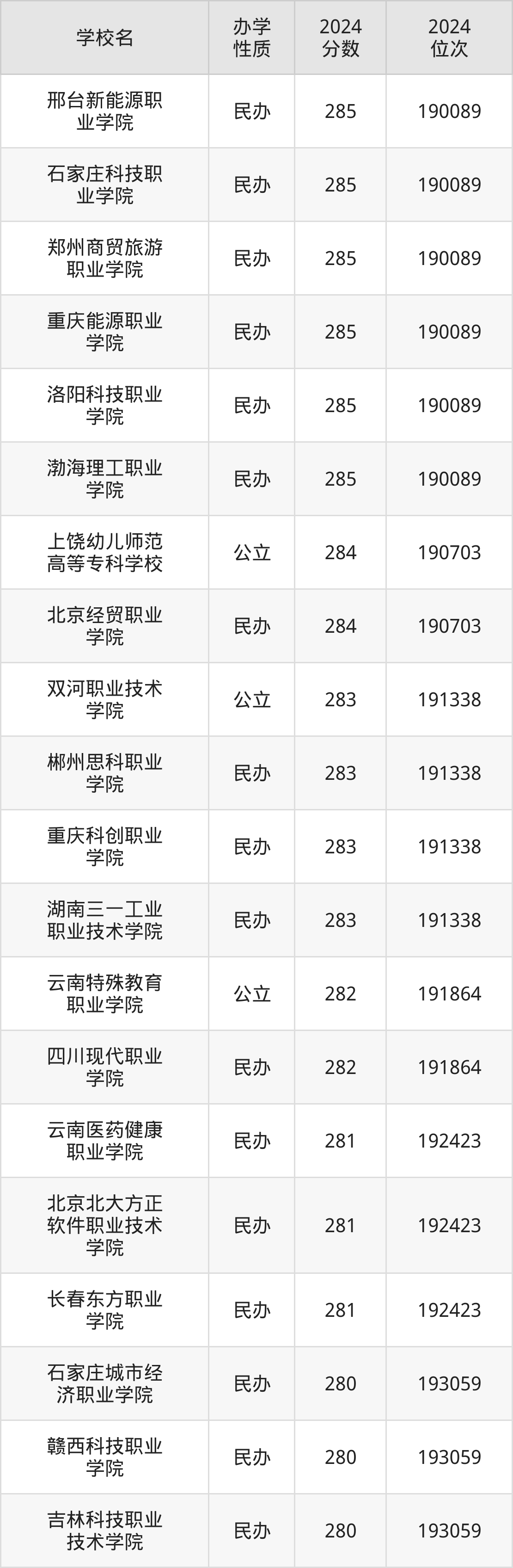 | 邢台新能源职 业学院 | 285 | 190089 |