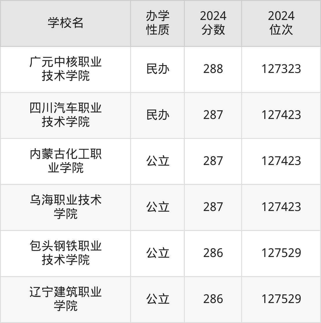| 内蒙古化工职 业学院 | 287 | 127423 |