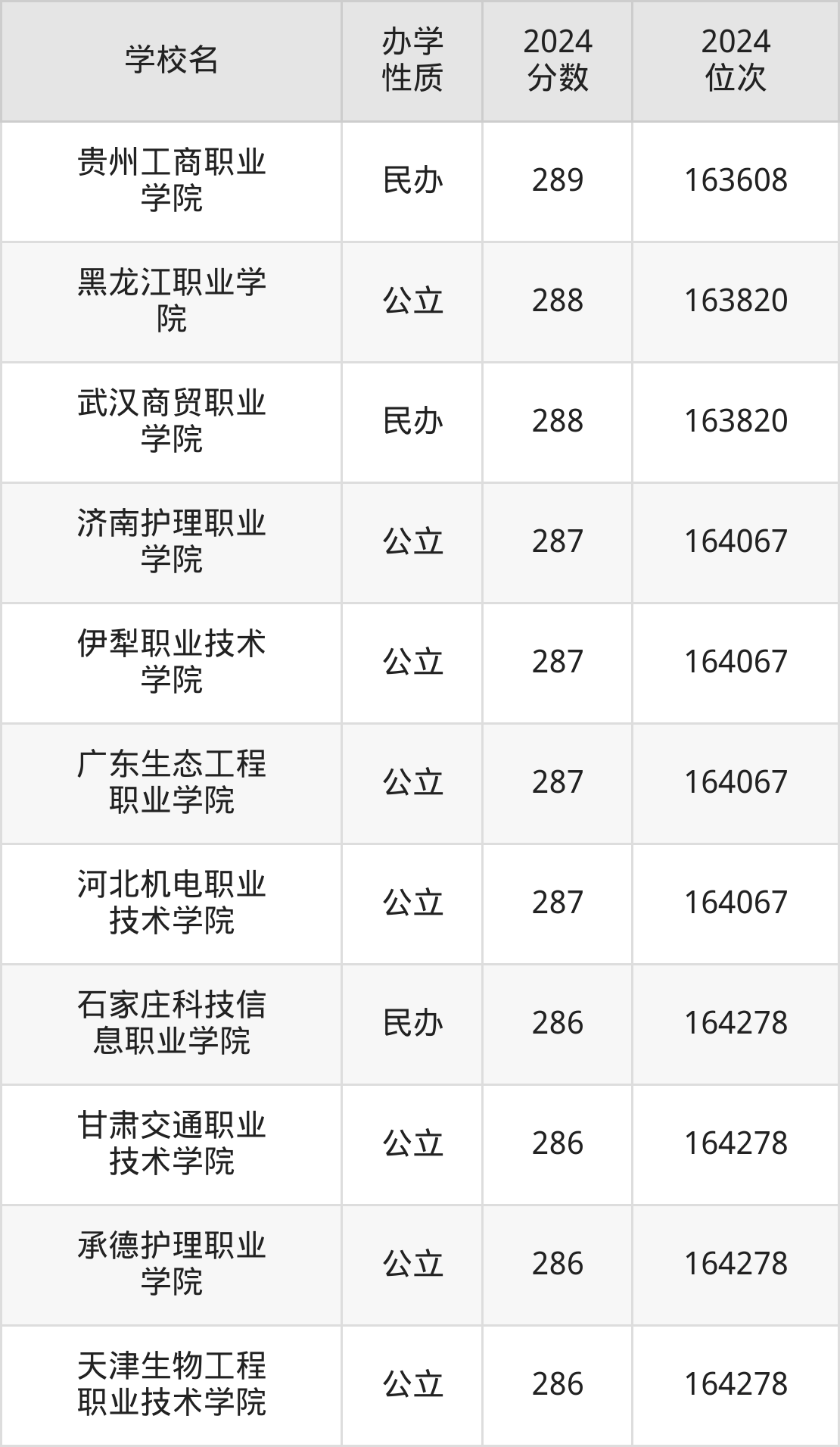 | 天津生物工程 职业技术学院 | 286 | 164278 |