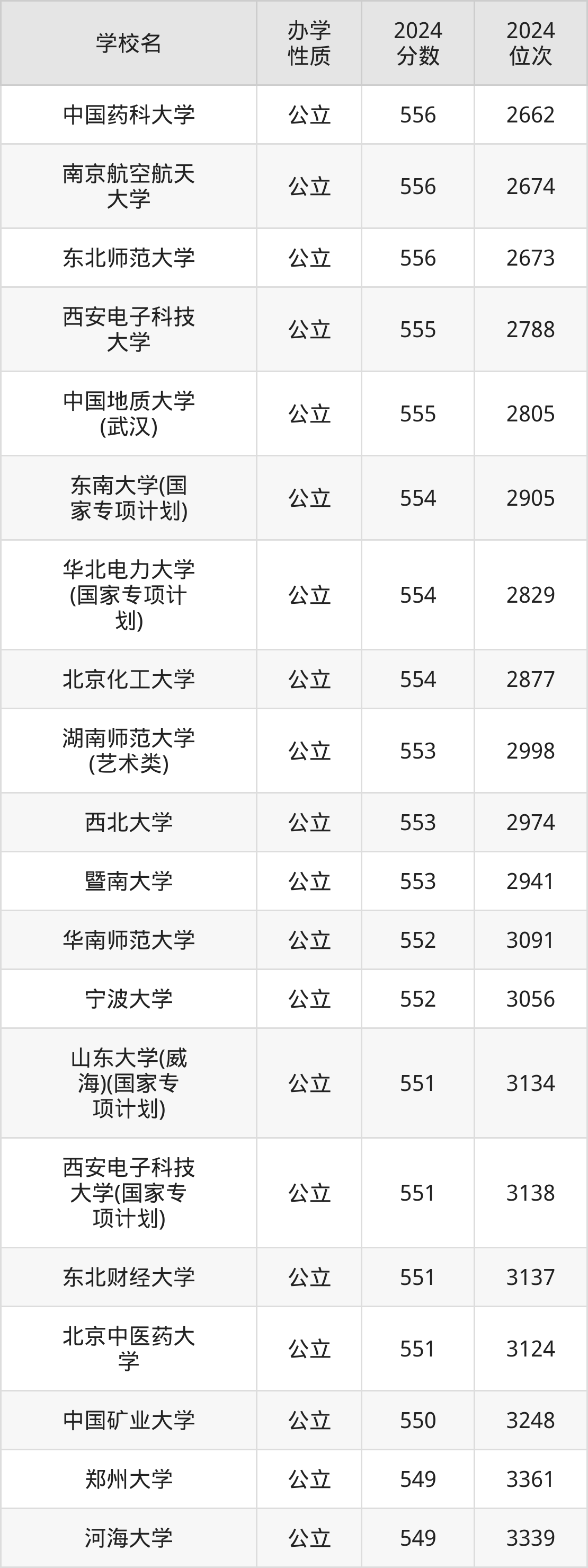 | 学校名 | 2024 分数 | 2024 位次 |
