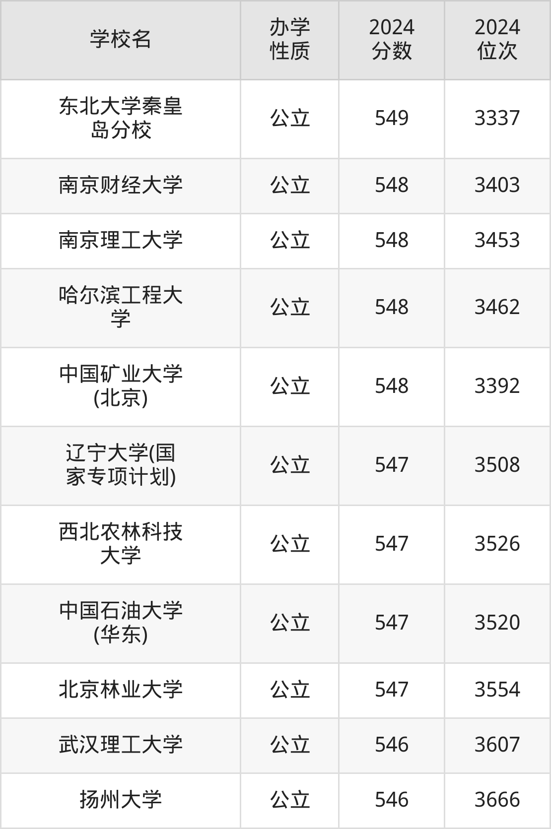 | 东北大学秦皇 岛分校 | 549 | 3337 |