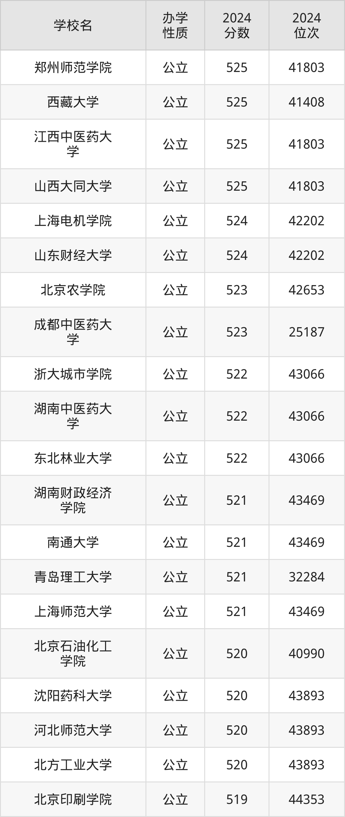 | 西藏大学 | 525 | 41408 |