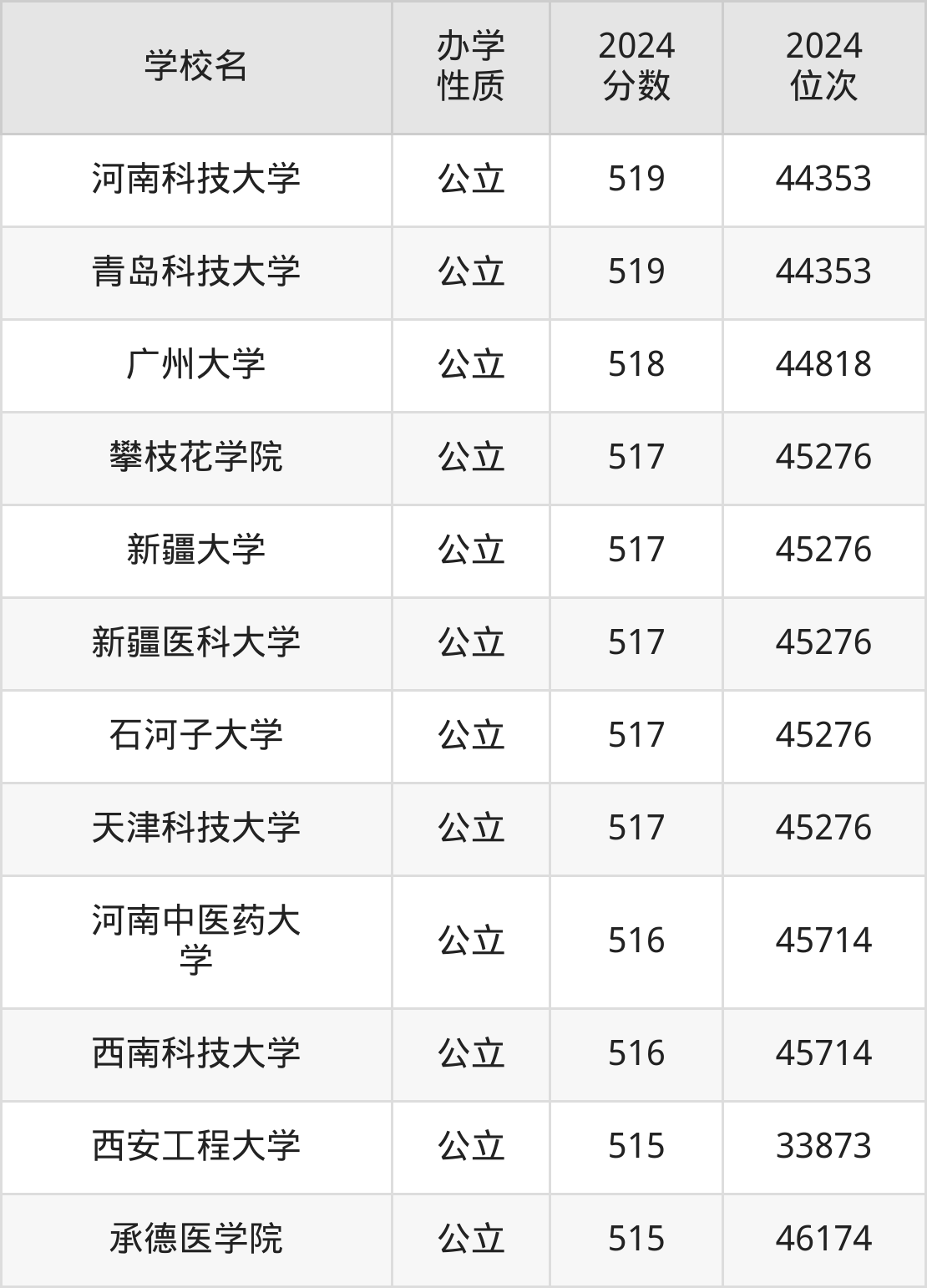 | 石河子大学 | 517 | 45276 |