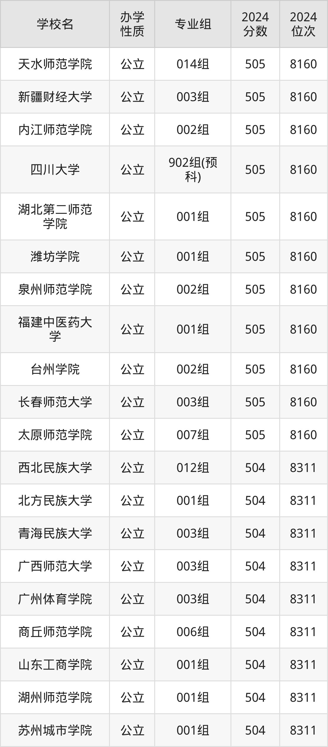 | 四川大学 | 902组(预 科) | 505 | 8160 |