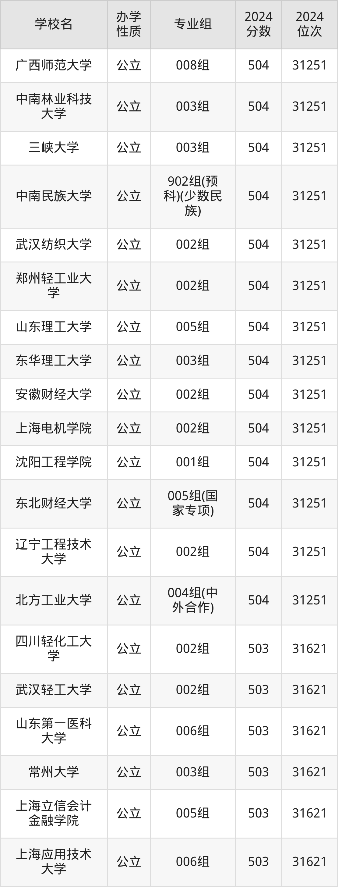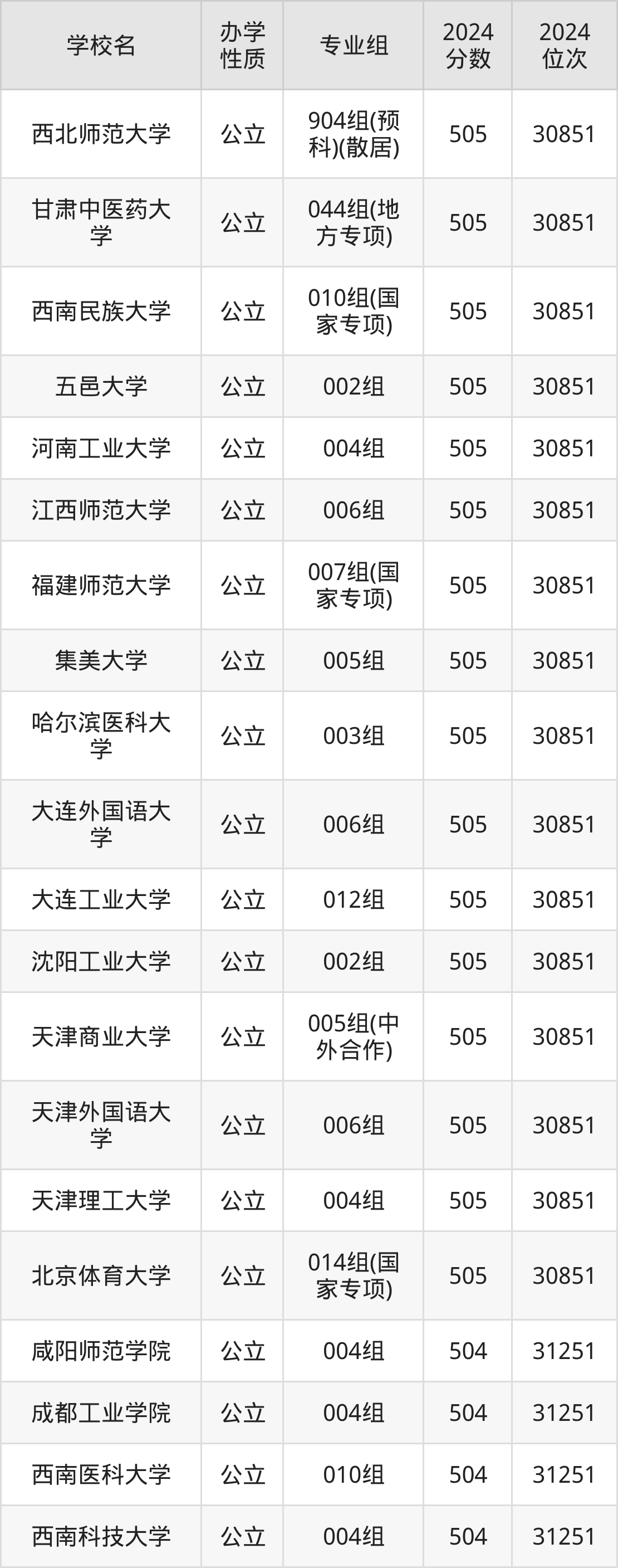 | 学校名 | 专业组 | 2024 分数 | 2024 位次 |