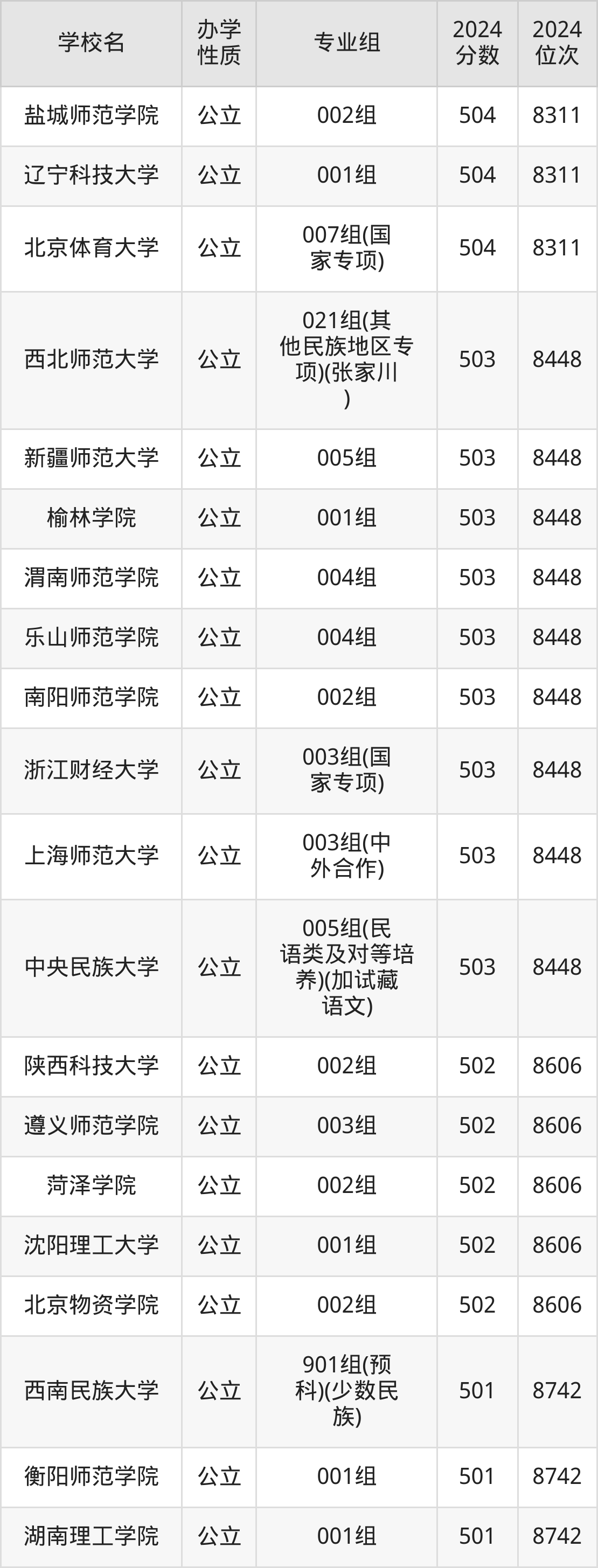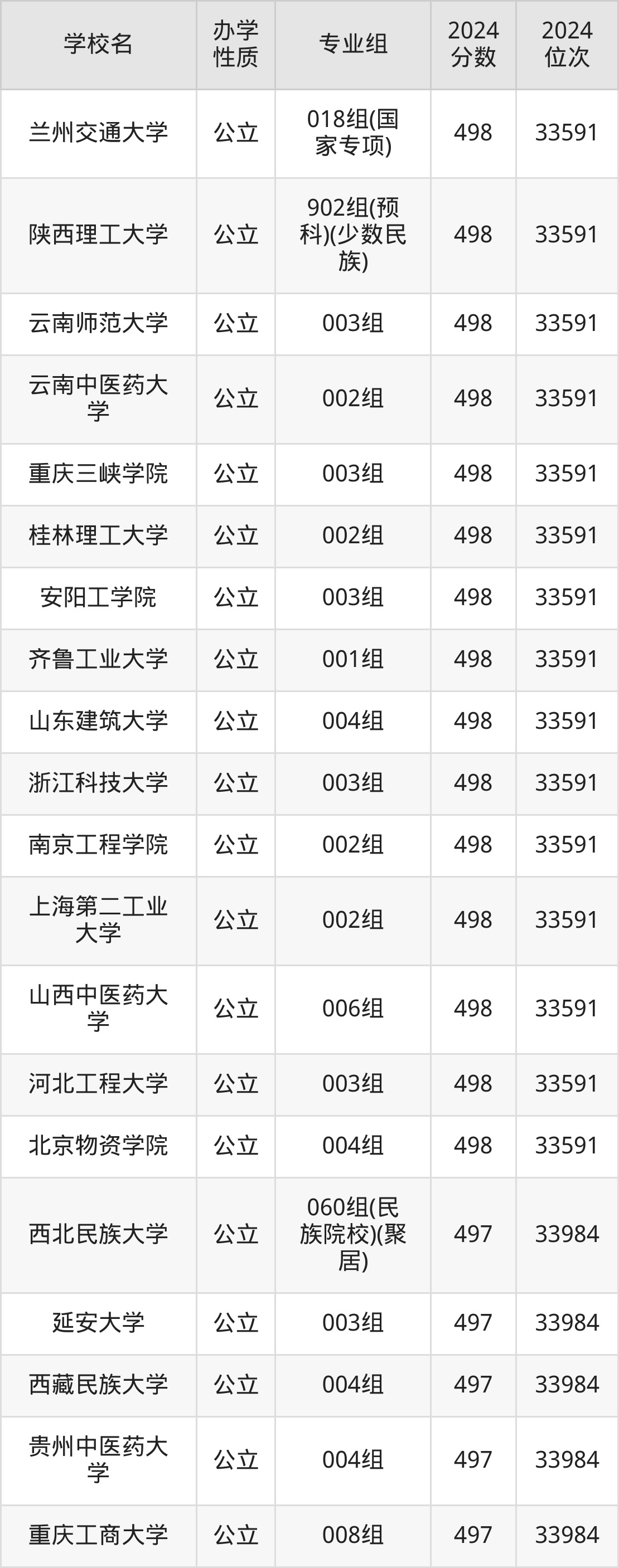 | 陕西理工大学 | 902组(预 科)(少数民 族) | 498 | 33591 |