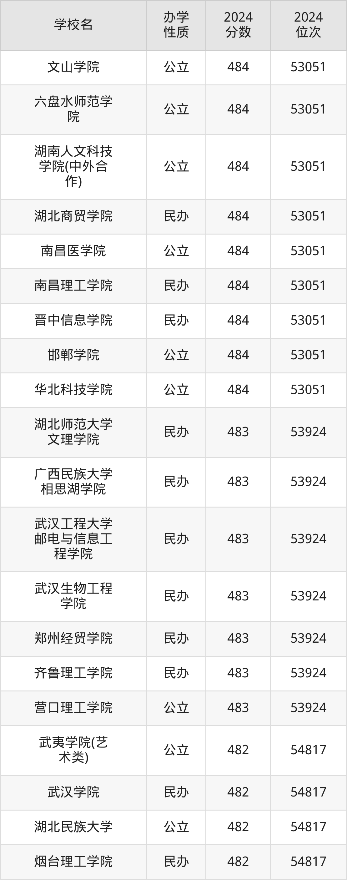 | 湖南人文科技 学院(中外合 作) | 484 | 53051 |
