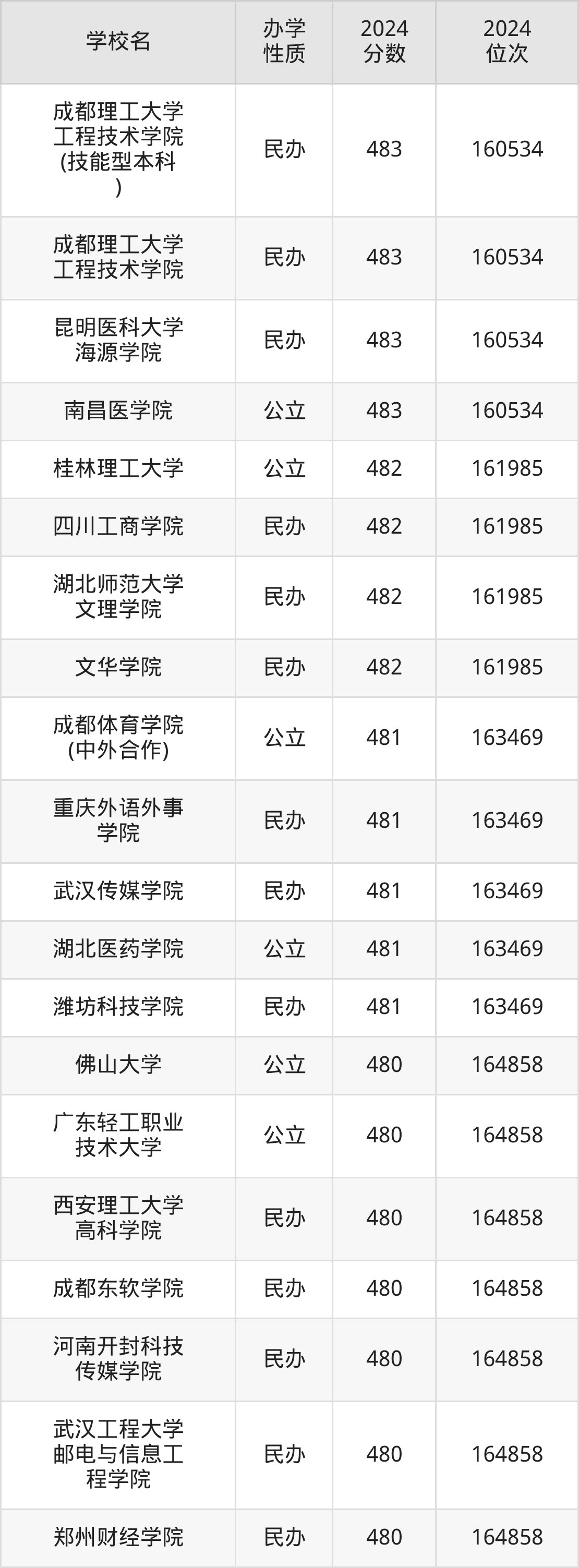 | 成都体育学院 (中外合作) | 481 | 163469 |