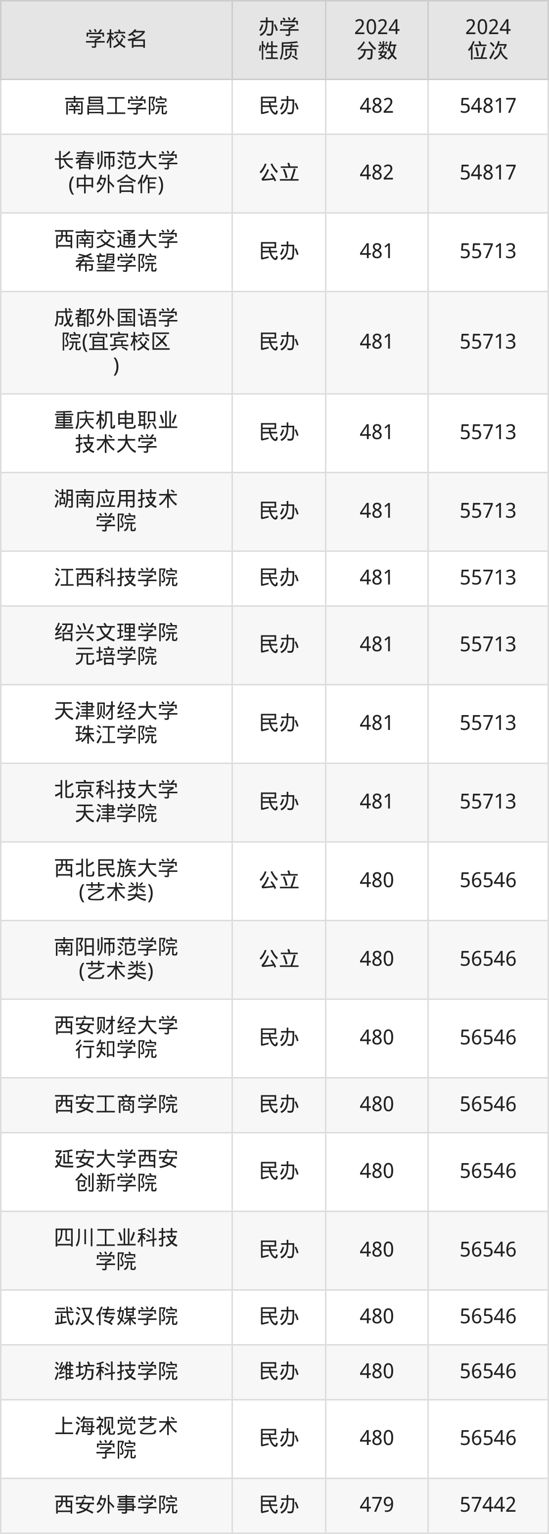 | 西安财经大学 行知学院 | 480 | 56546 |