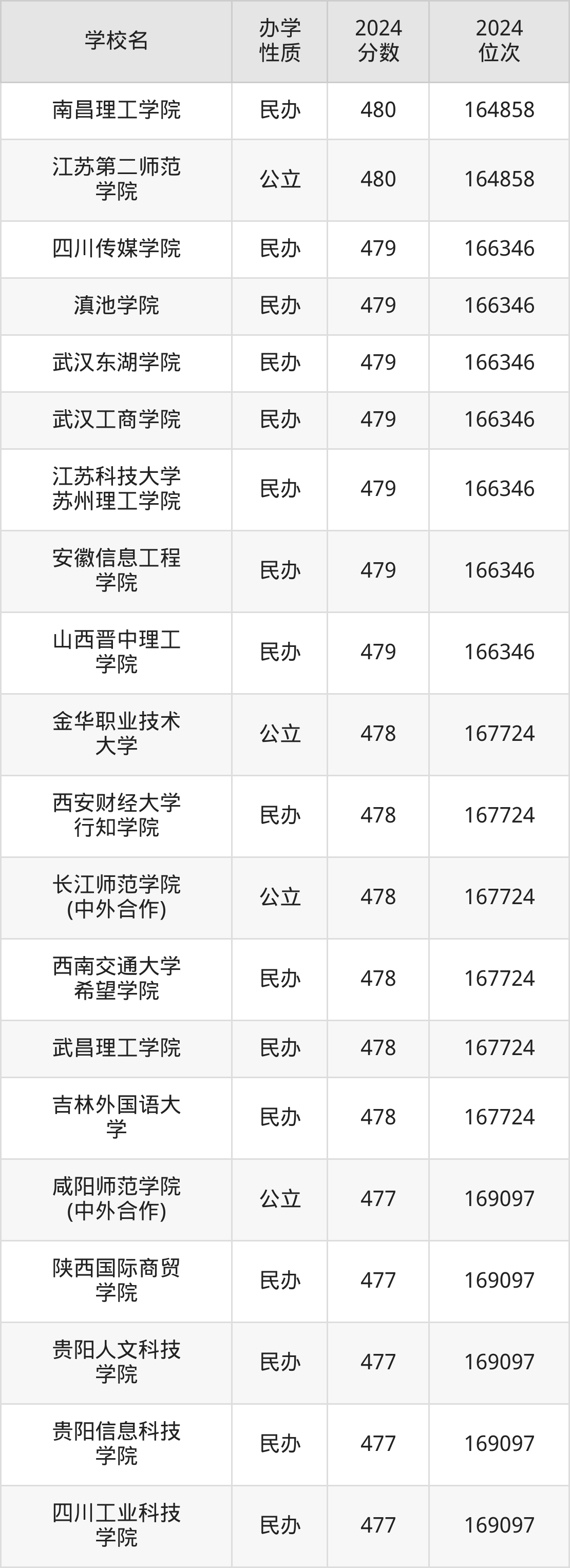 | 西安财经大学 行知学院 | 478 | 167724 |