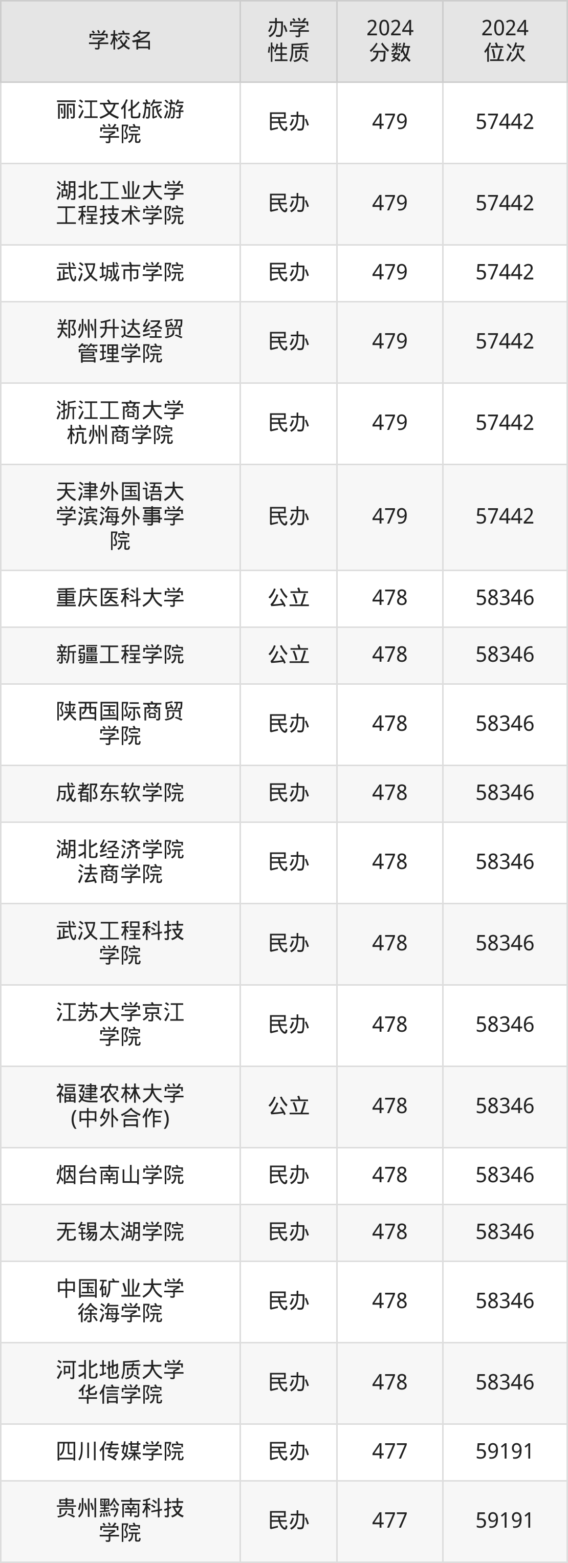 | 中国矿业大学 徐海学院 | 478 | 58346 |