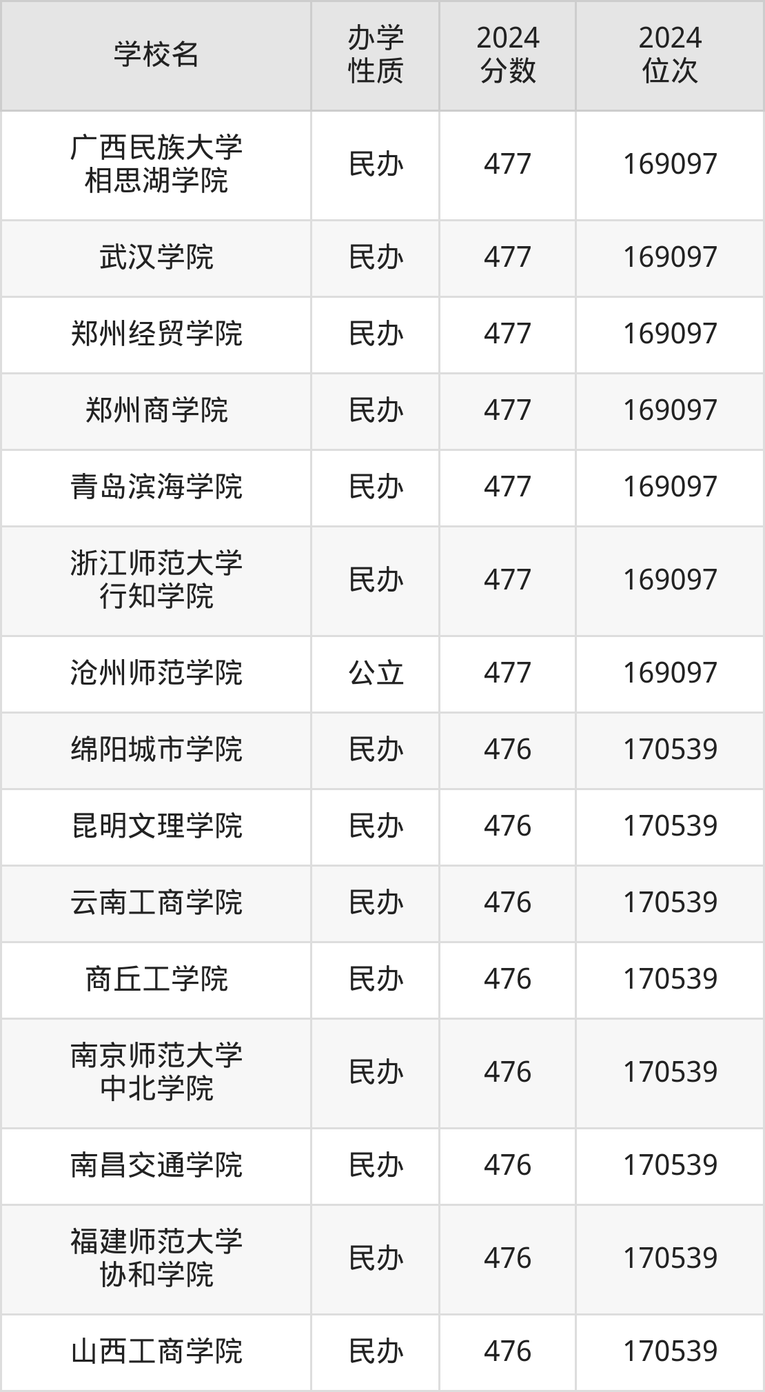 | 广西民族大学 相思湖学院 | 477 | 169097 |