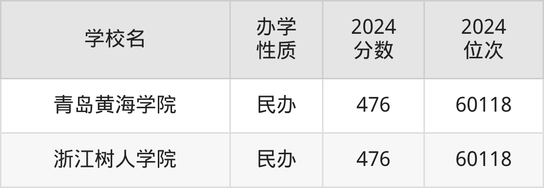 | 海南热带海洋 学院(中外合 作) | 476 | 60118 |