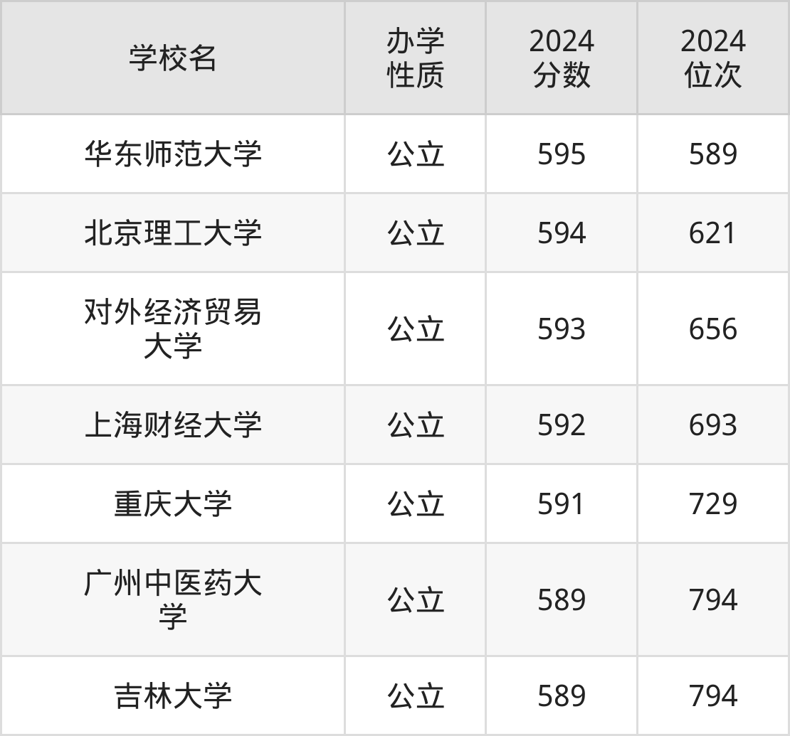 | 华东师范大学 | 595 | 589 |
