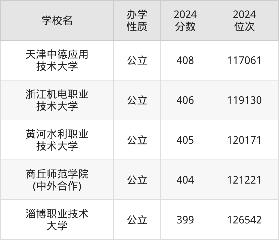 | 辽宁理工职业 大学 | 405 | 314079 |