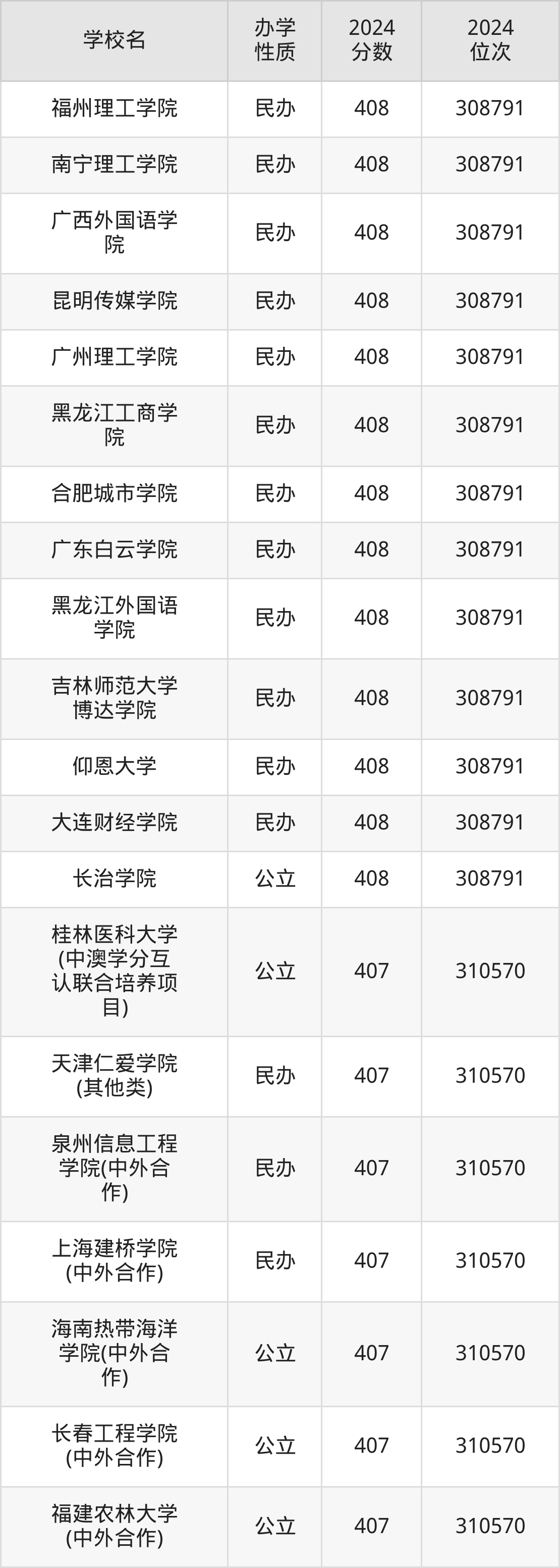 | 桂林旅游学院 (中外合作) | 408 | 308791 |