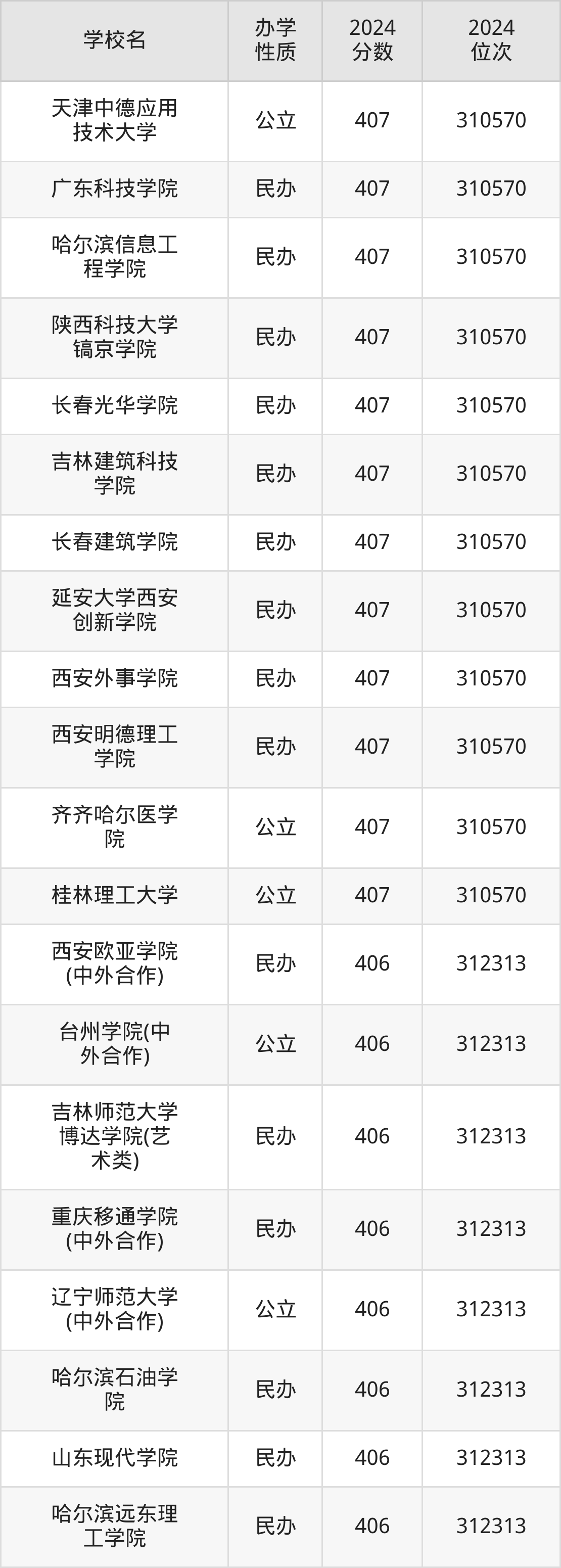 | 吉林建筑科技 学院 | 407 | 310570 |