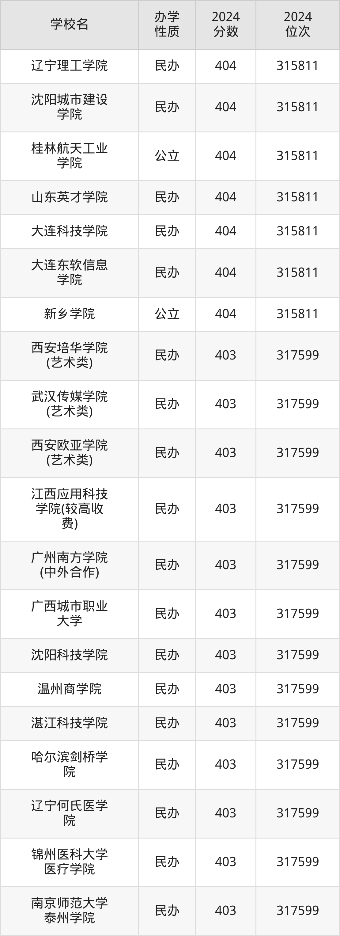 | 辽宁何氏医学 院 | 403 | 317599 |