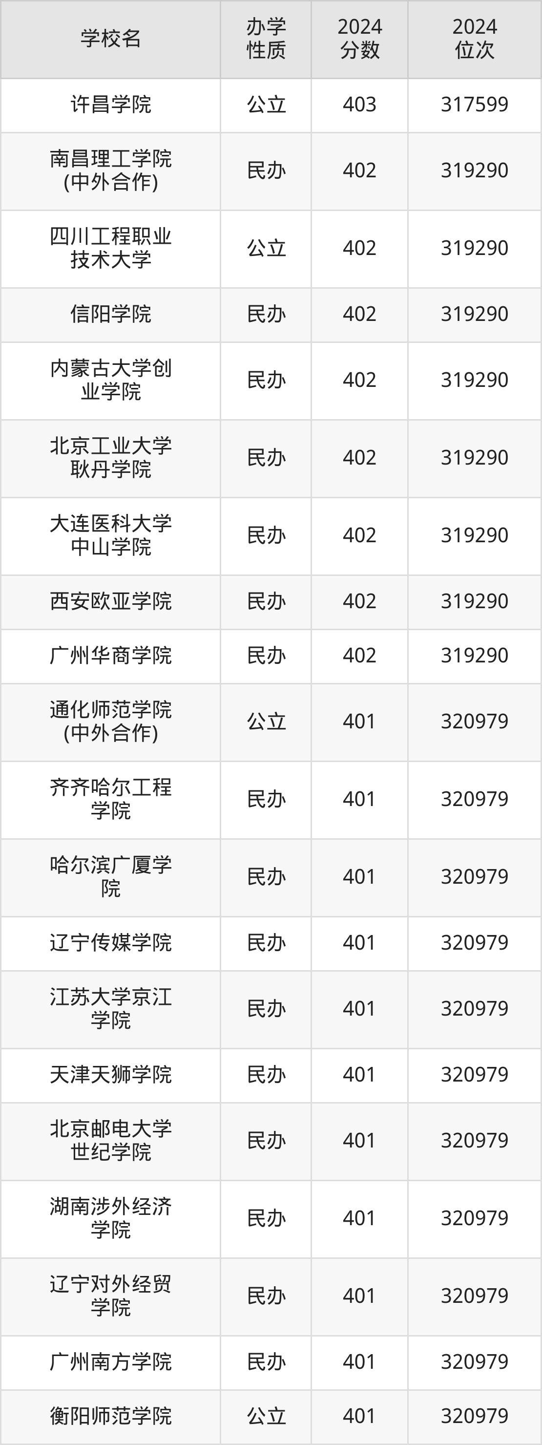| 江西应用科技 学院(较高收 费) | 403 | 317599 |