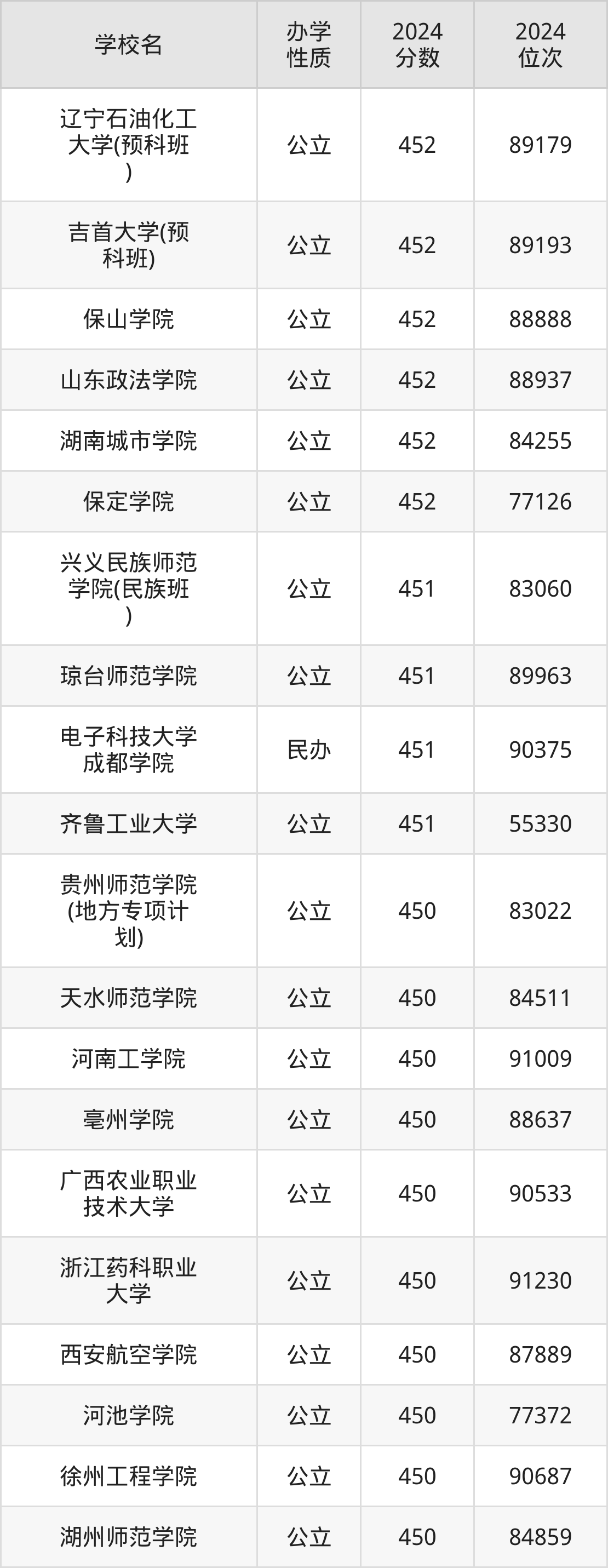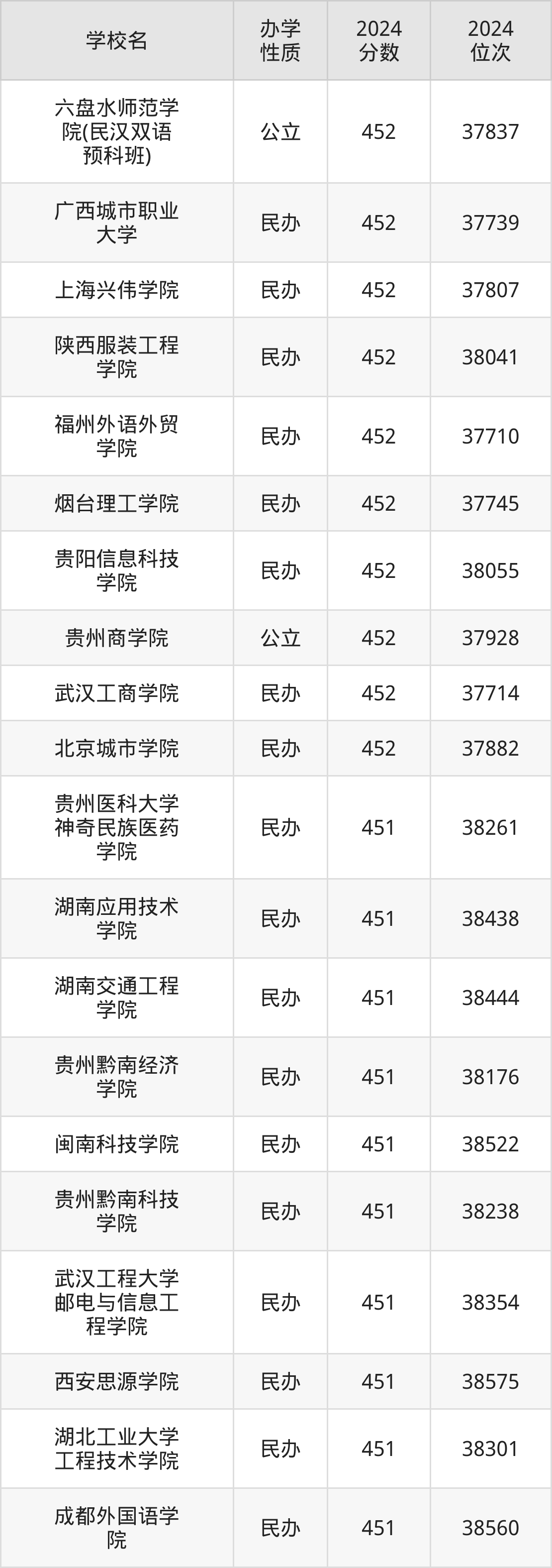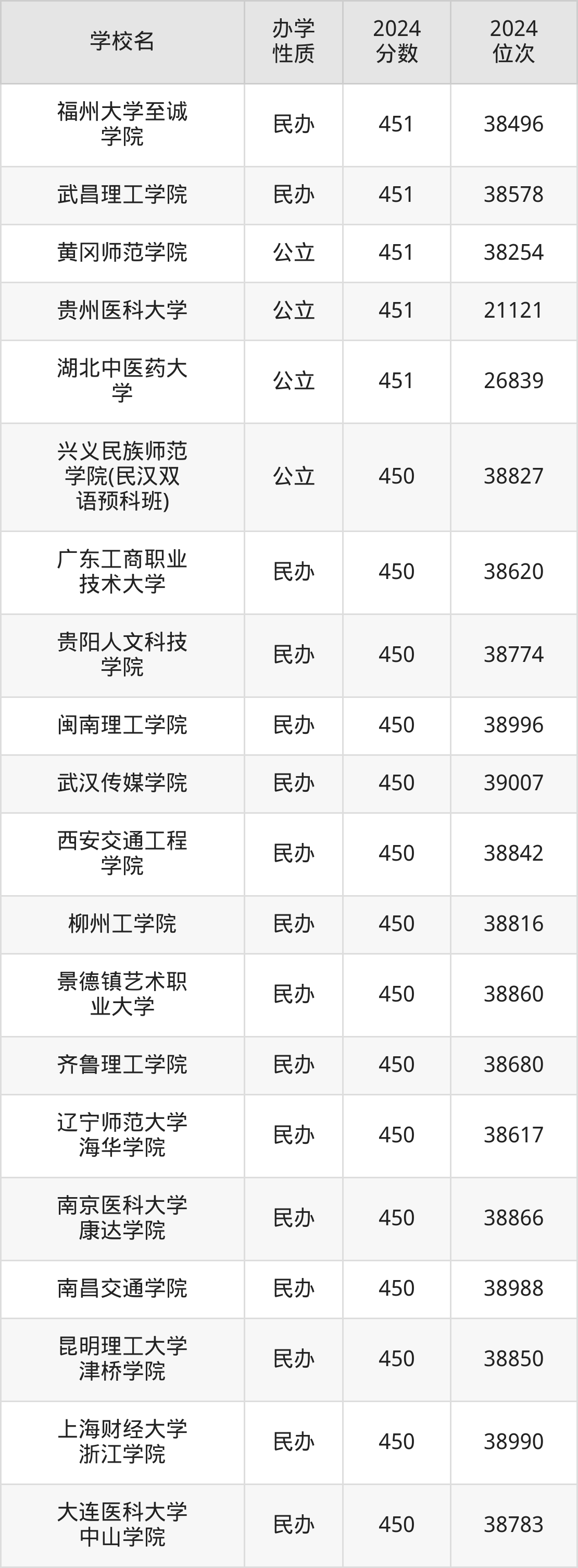 | 贵阳人文科技 学院 | 450 | 38774 |