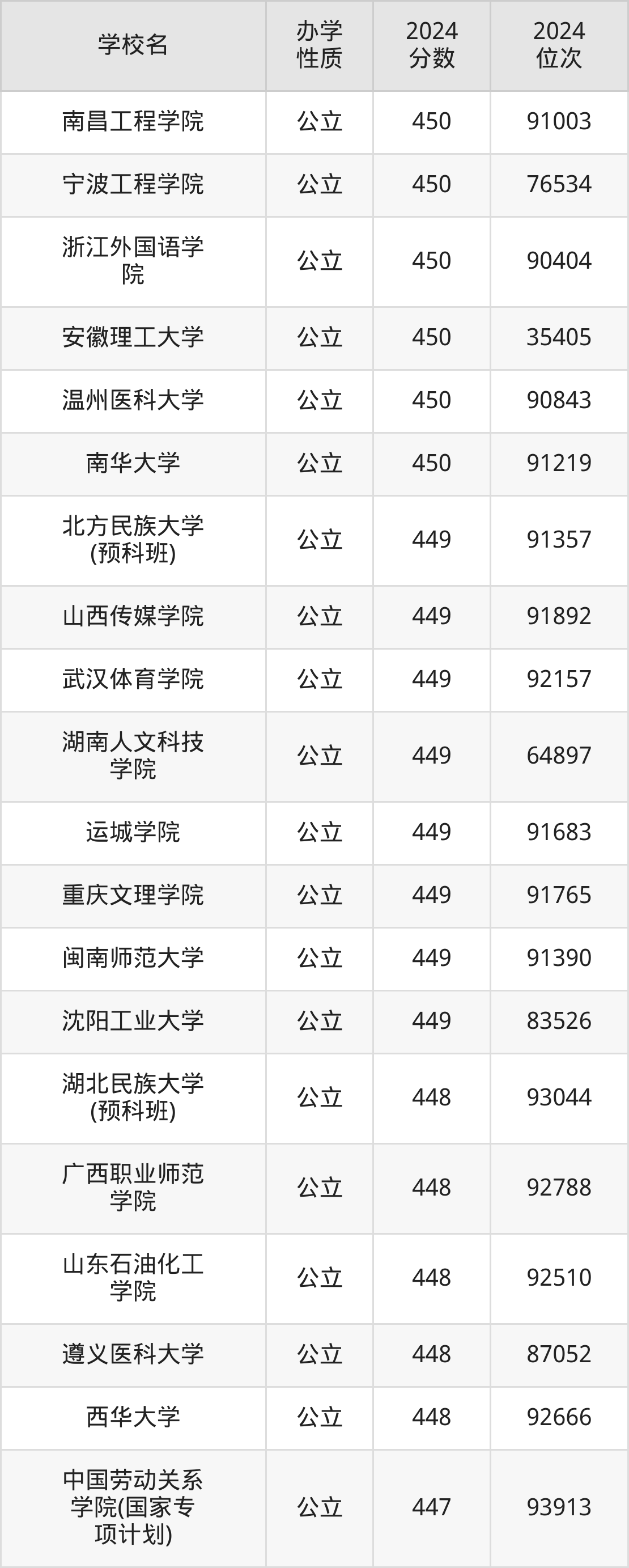 | 湖北民族大学 (预科班) | 448 | 93044 |
