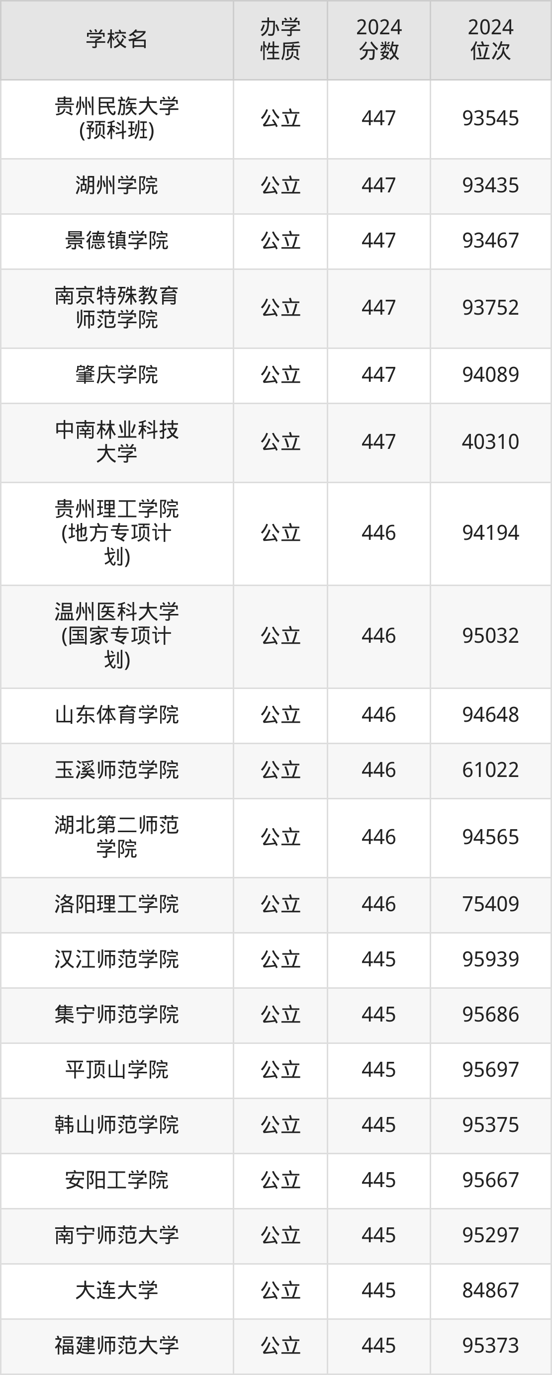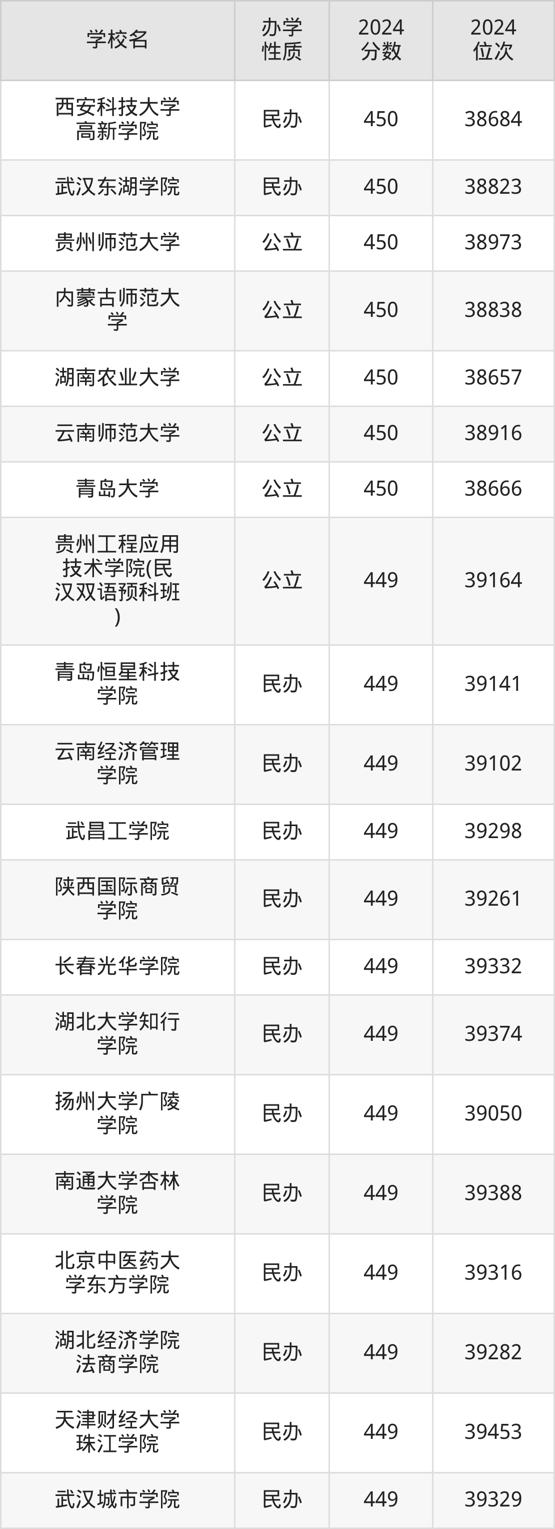 | 贵州民族大学 (预科班) | 447 | 93545 |
