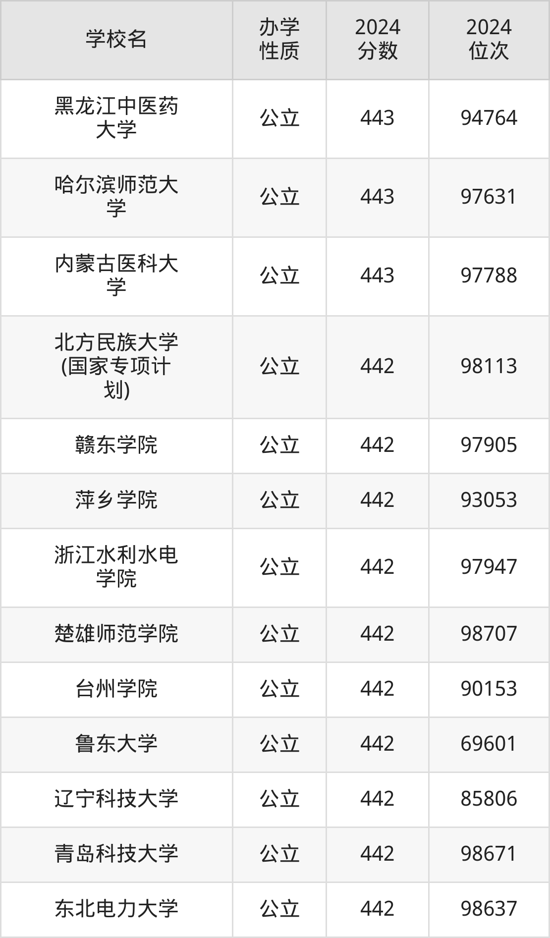 | 北方民族大学 (国家专项计 划) | 442 | 98113 |