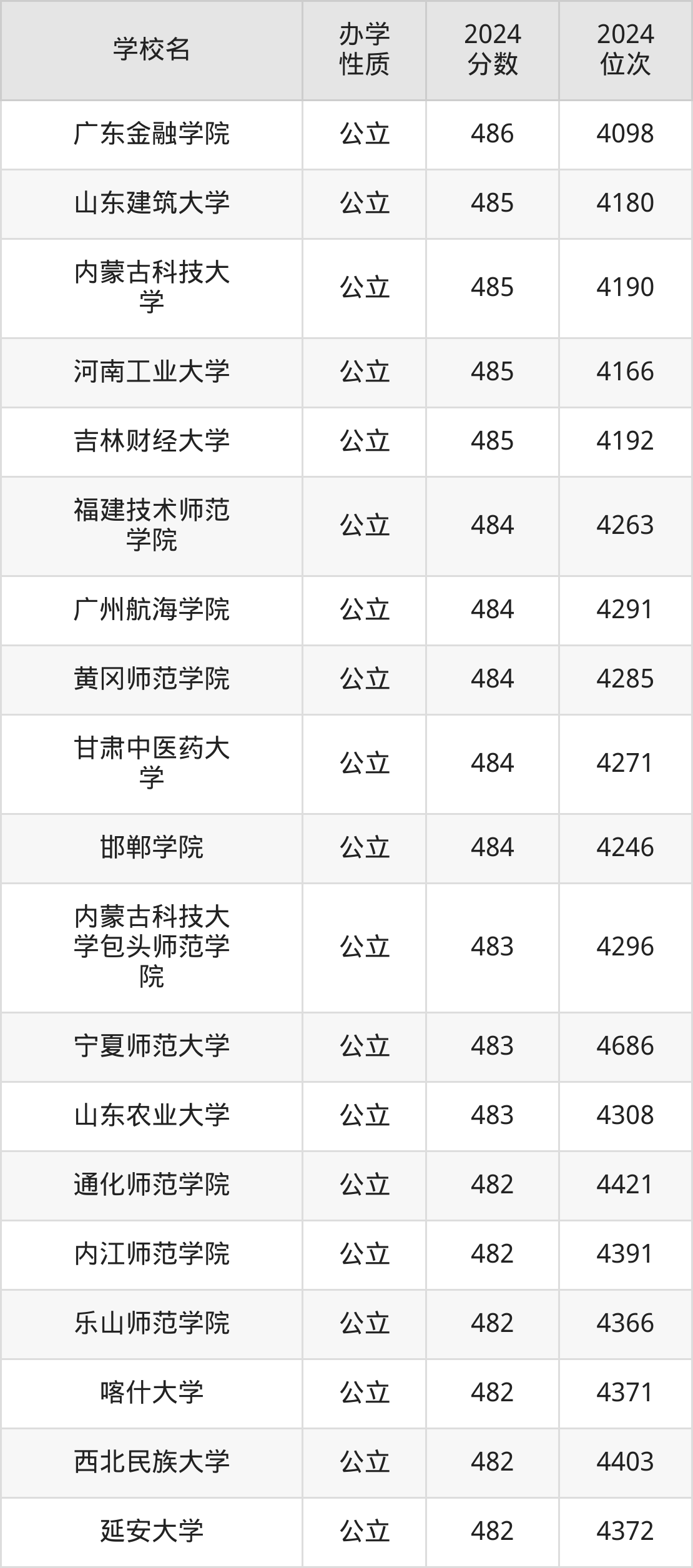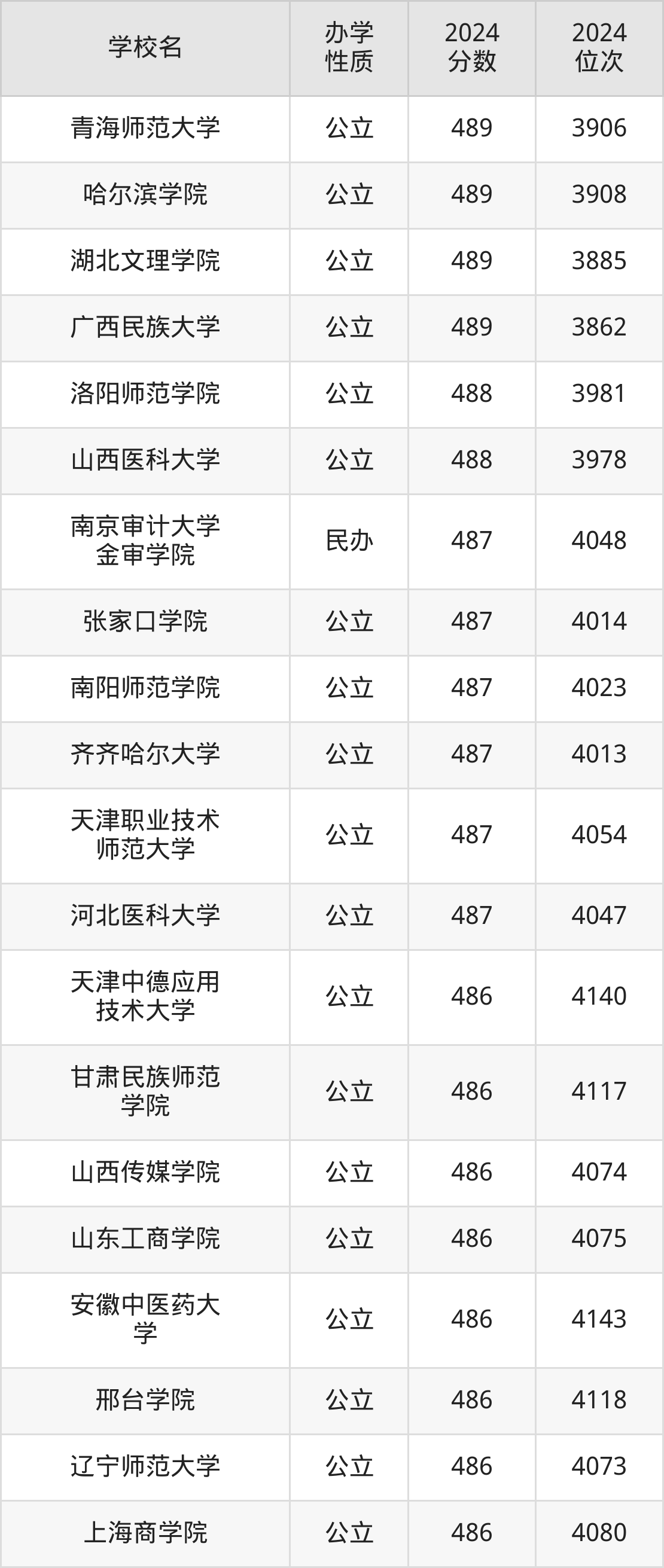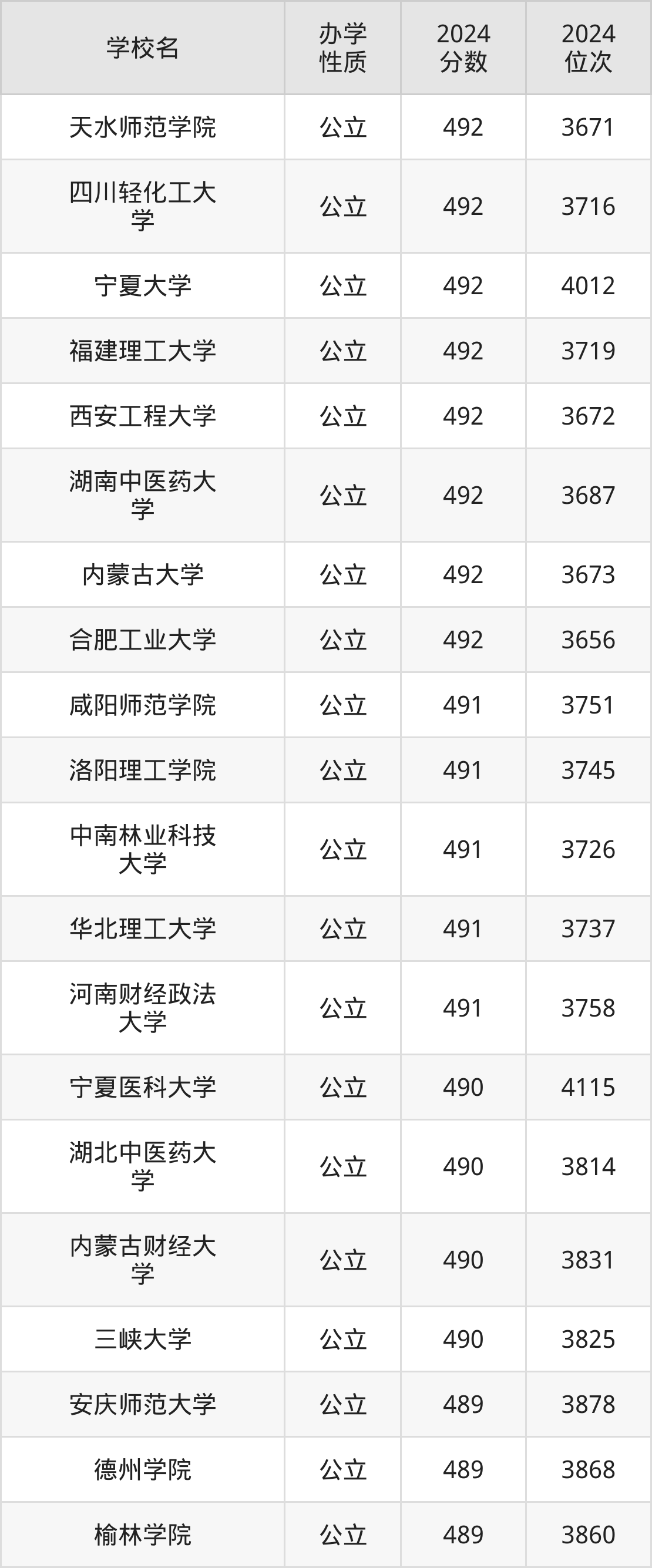 2024年宁夏文科487分考生能上天水师范学院、四川轻化工大学、福建理工大学、咸阳师范学院、洛阳理工学院等49所二本院校,具体录取分数线及位次为: