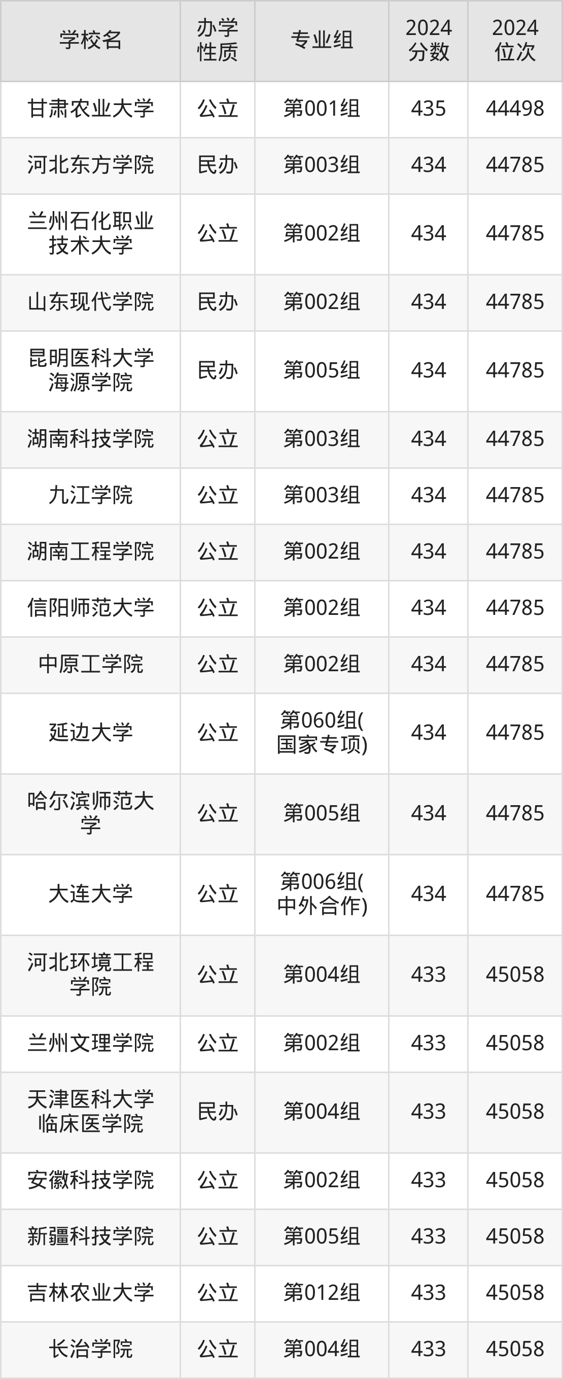 | 延边大学 | 第060组( 国家专项) | 434 | 44785 |