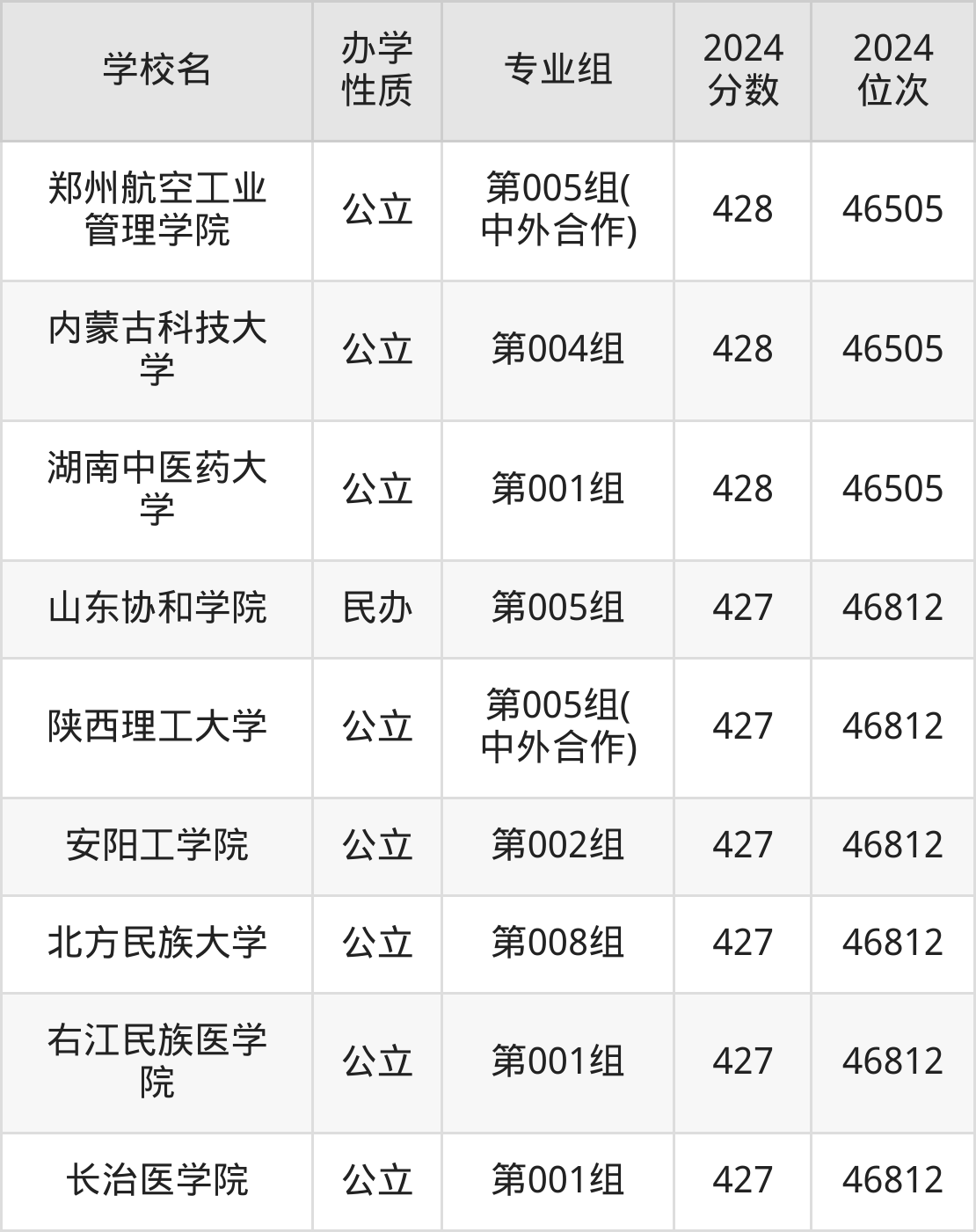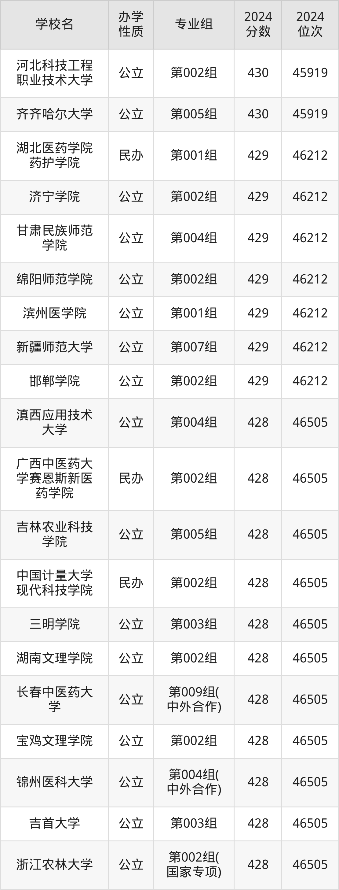 | 学校名 | 专业组 | 2024 分数 | 2024 位次 |
