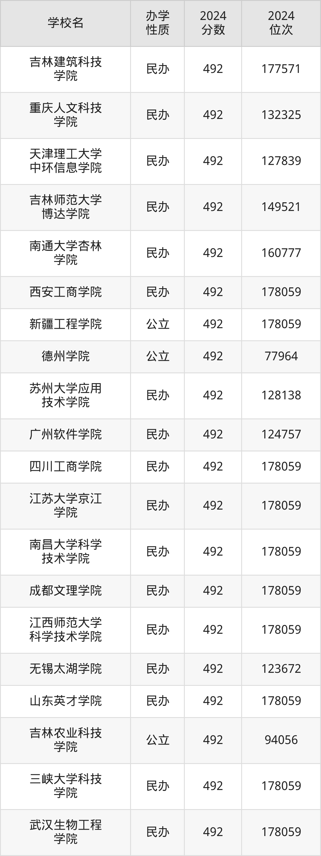 | 江苏财经职业 技术学院 | 492 | 178059 |