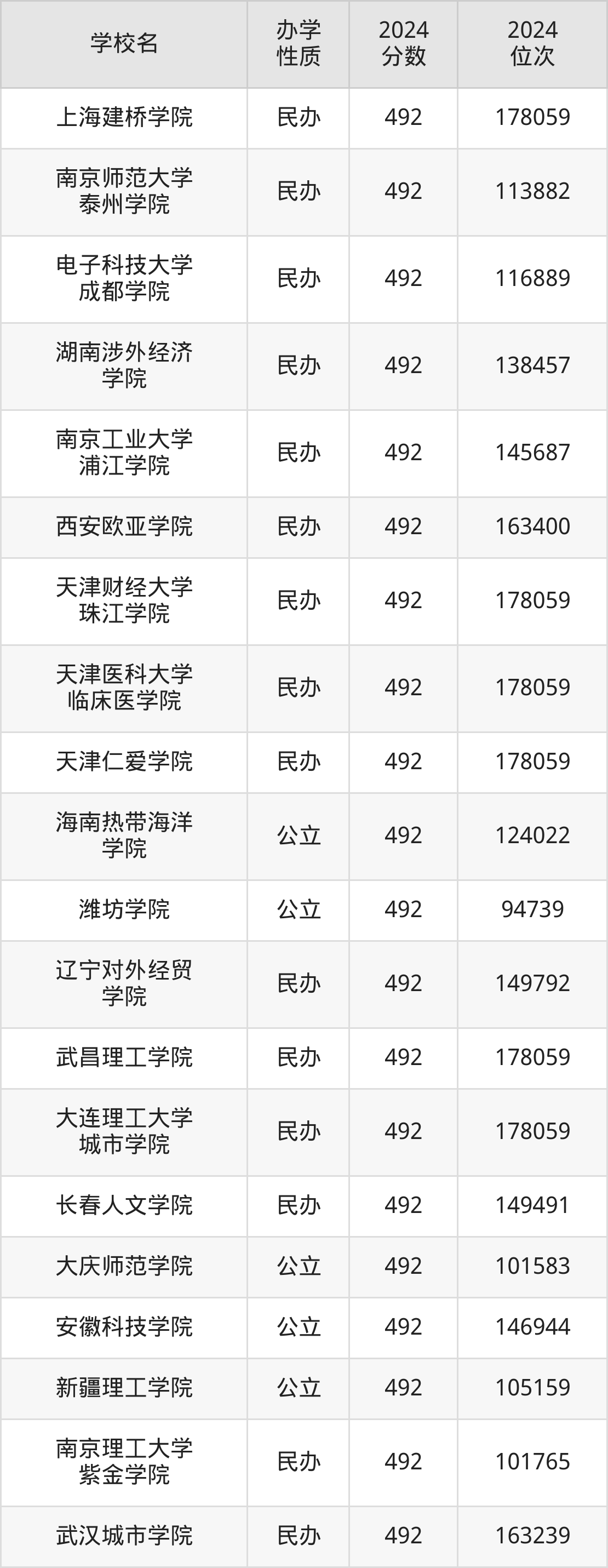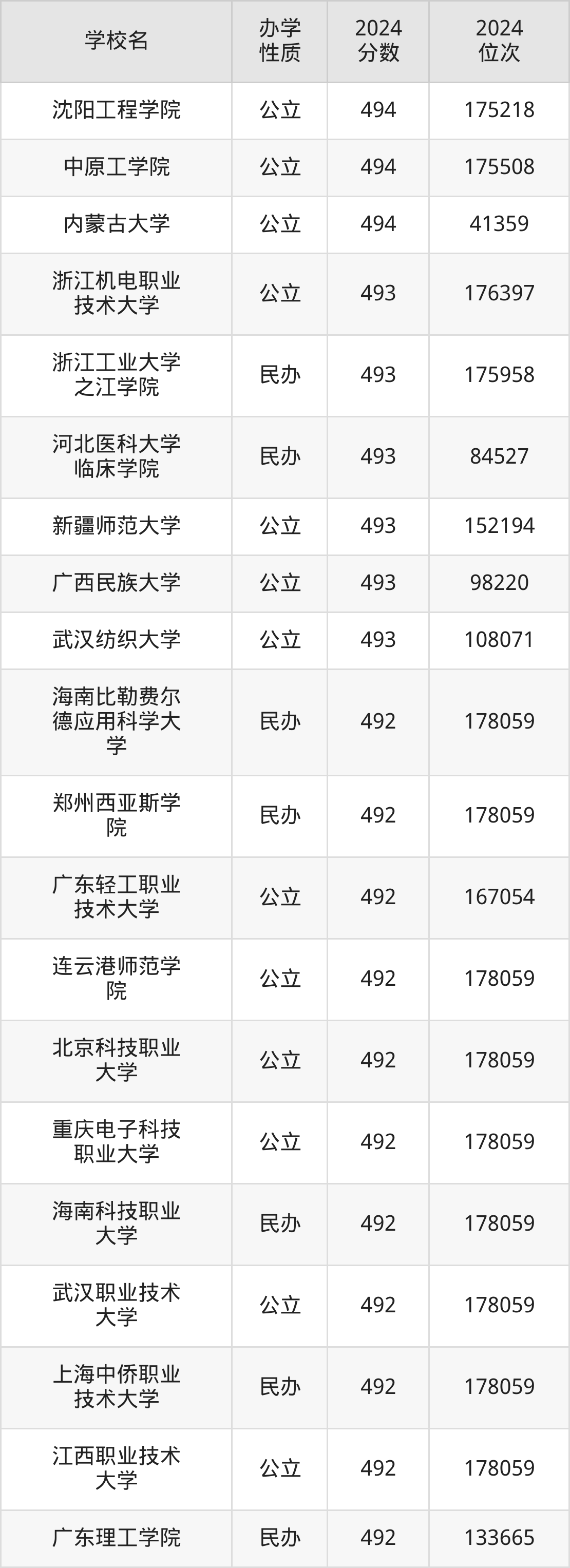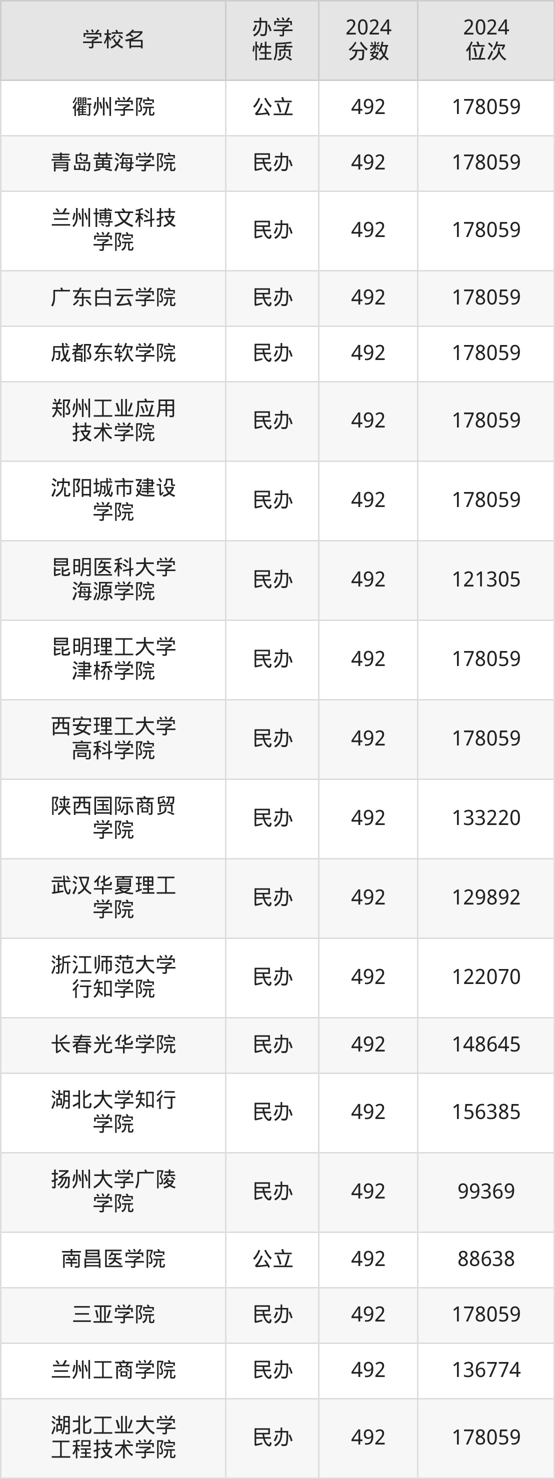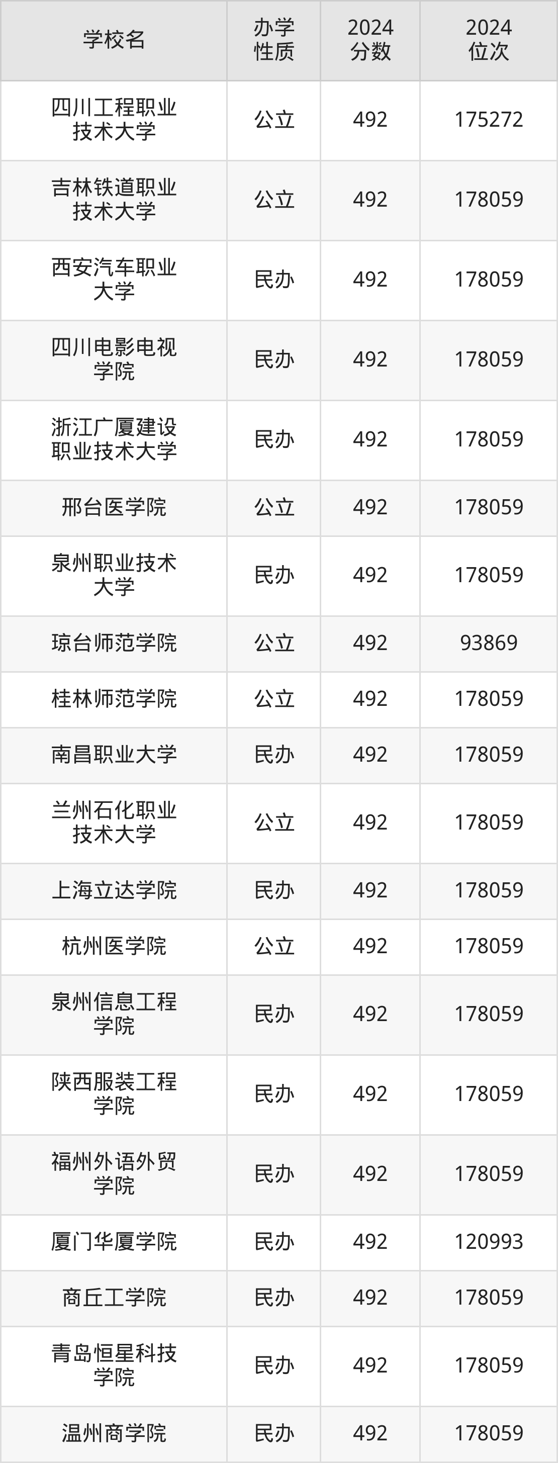 | 海南卫生健康 职业学院 | 492 | 177865 |