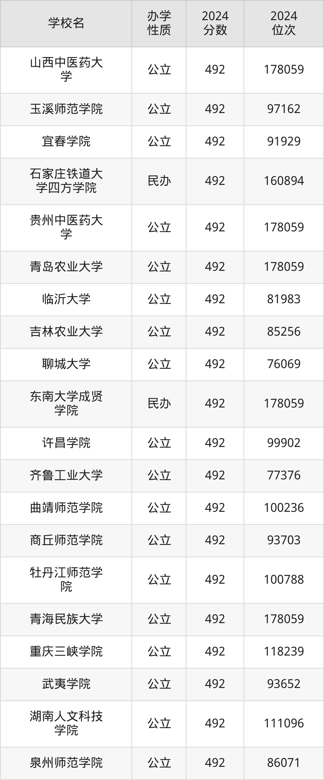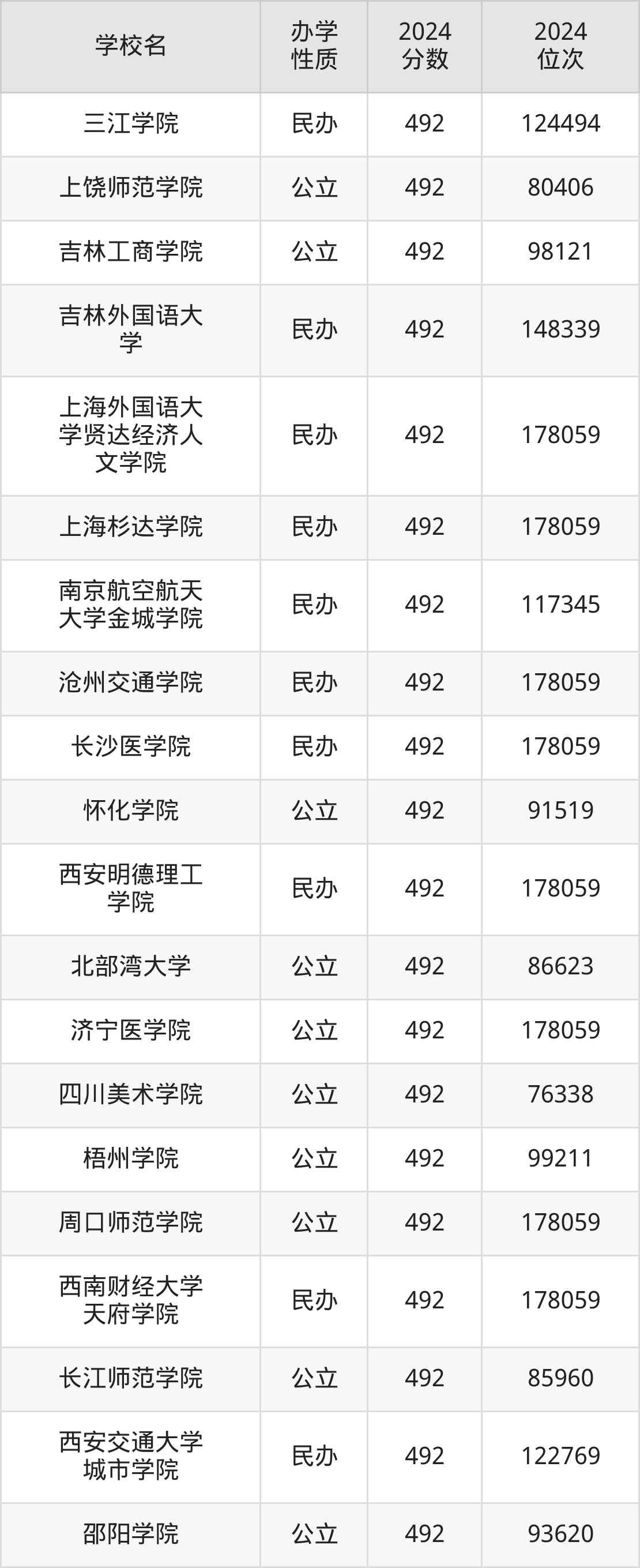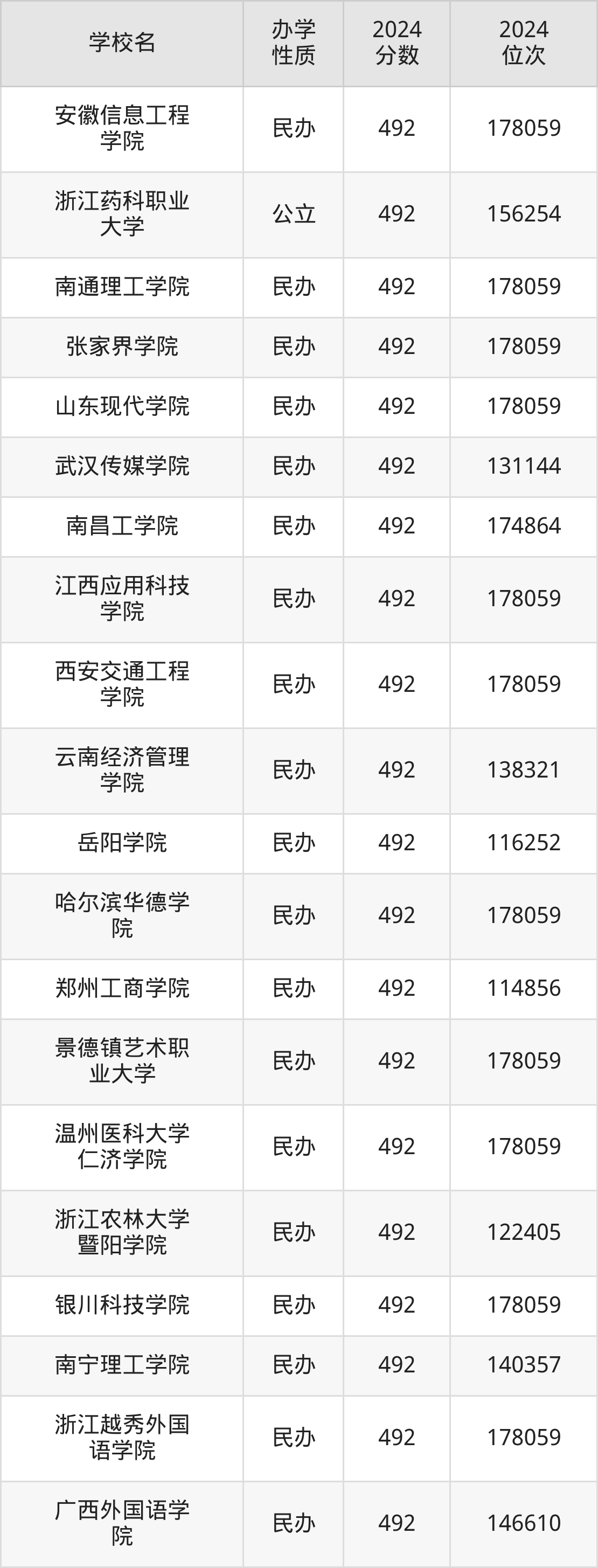 | 上饶卫生健康 职业学院 | 492 | 178059 |