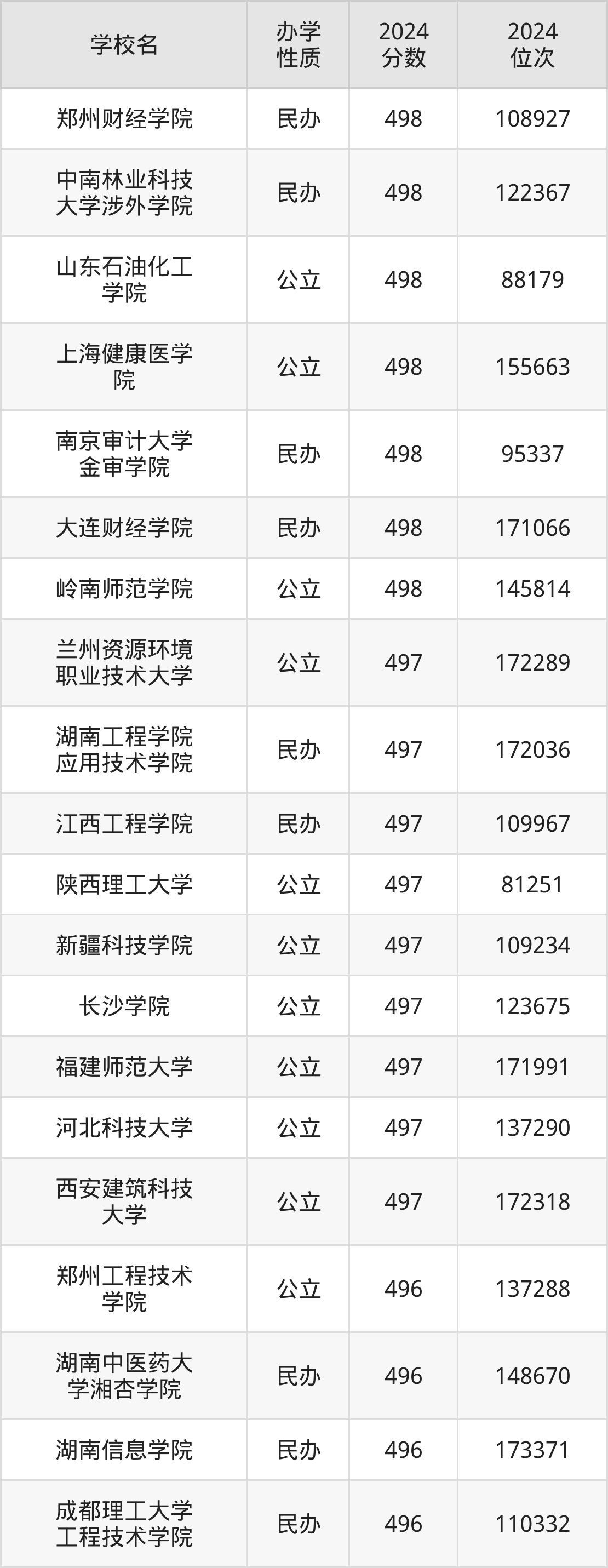 | 中南林业科技 大学涉外学院 | 498 | 122367 |