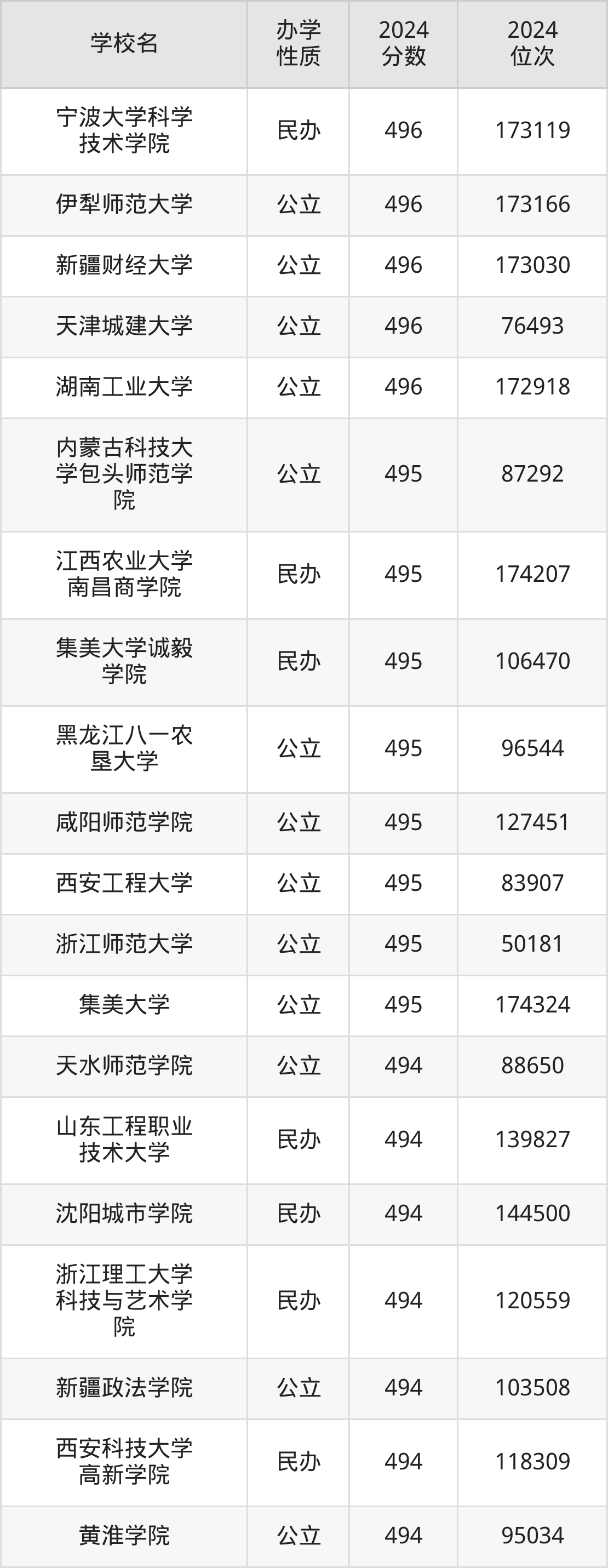 | 宁波大学科学 技术学院 | 496 | 173119 |