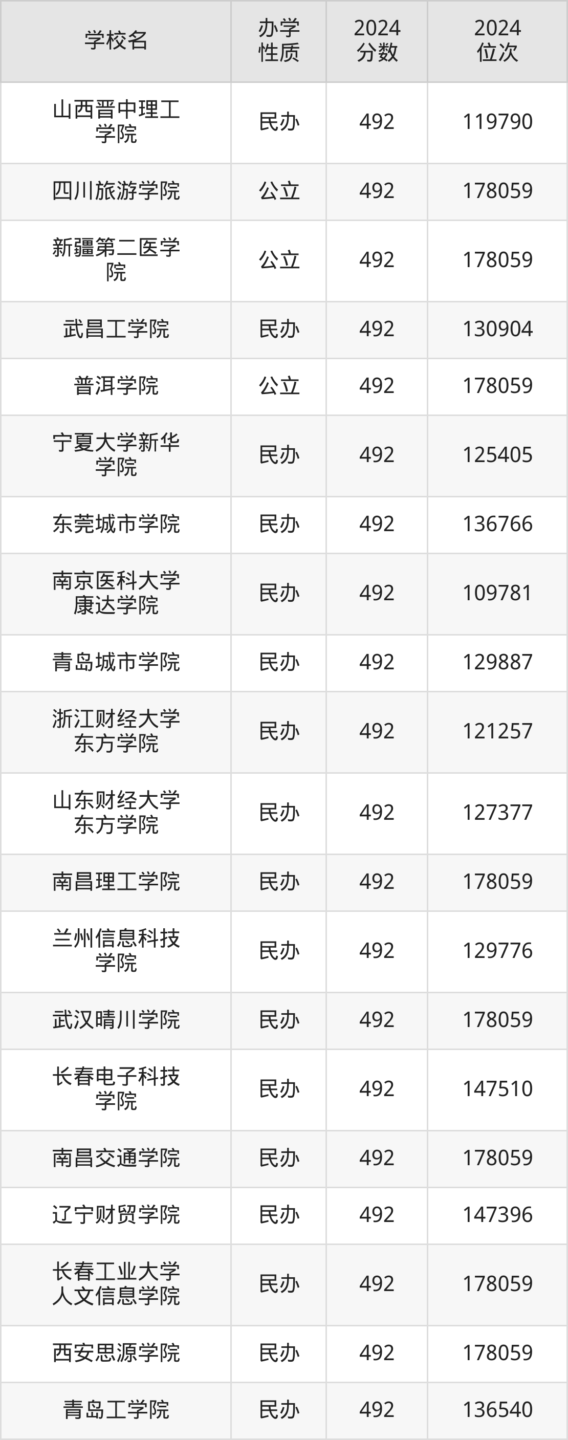 | 萍乡卫生职业 学院 | 492 | 178059 |