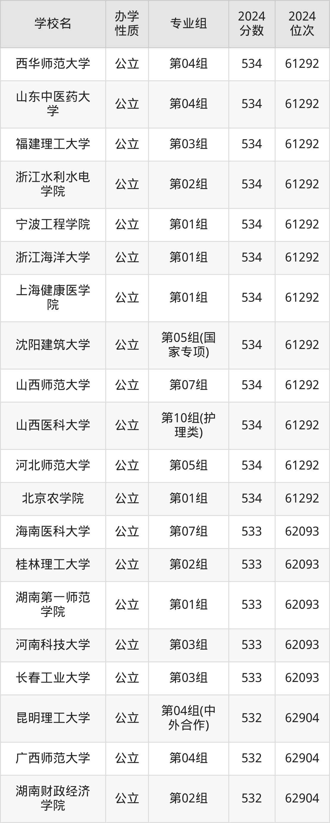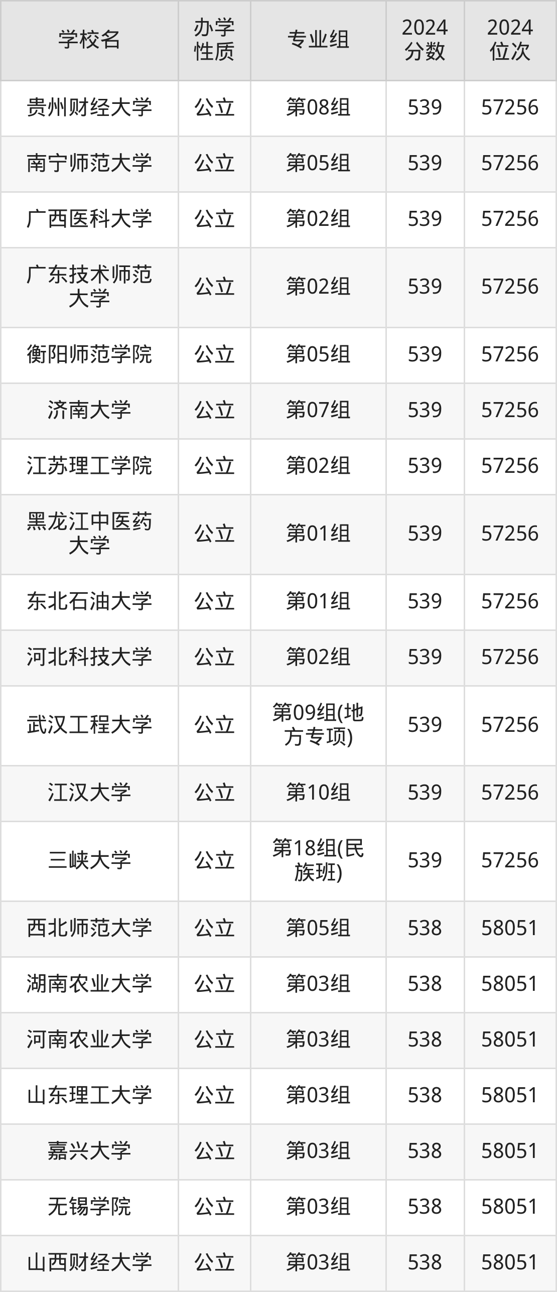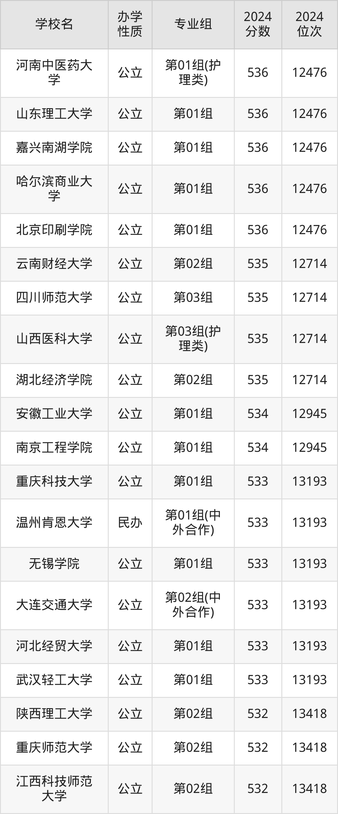 | 学校名 | 专业组 | 2024 分数 | 2024 位次 |