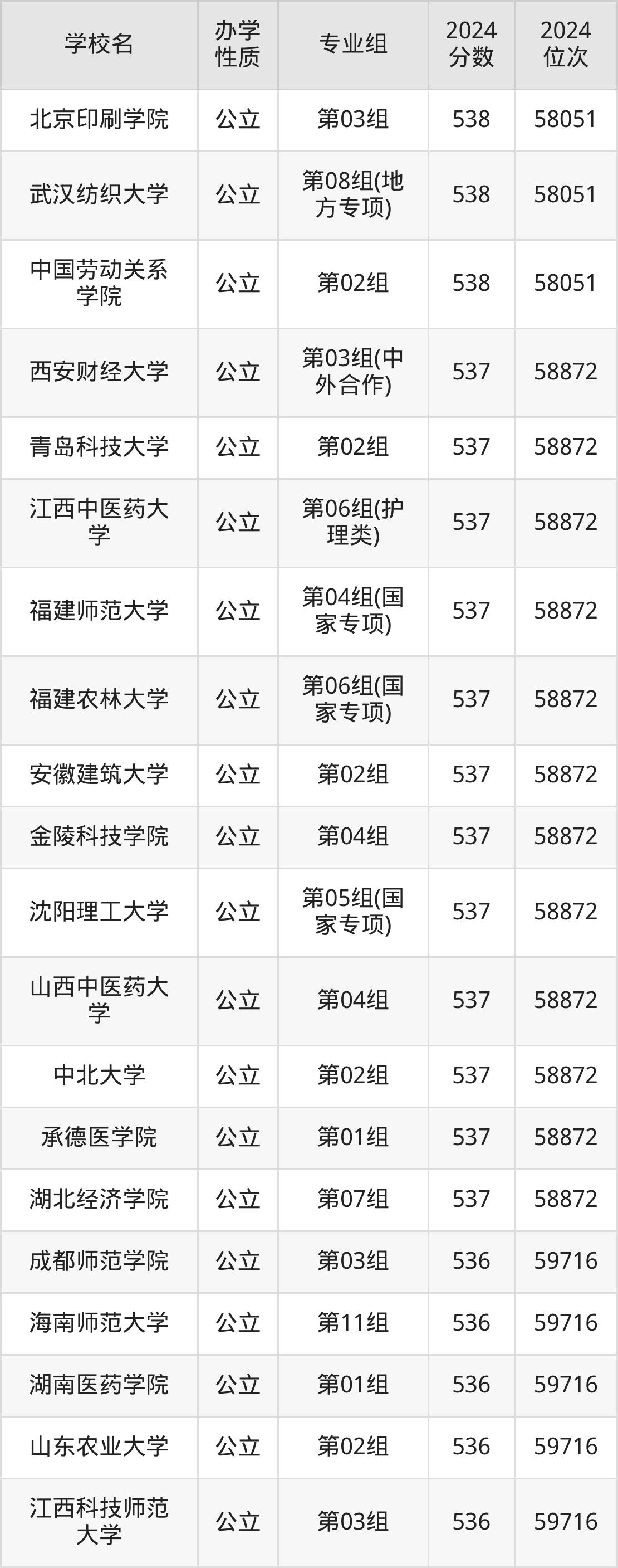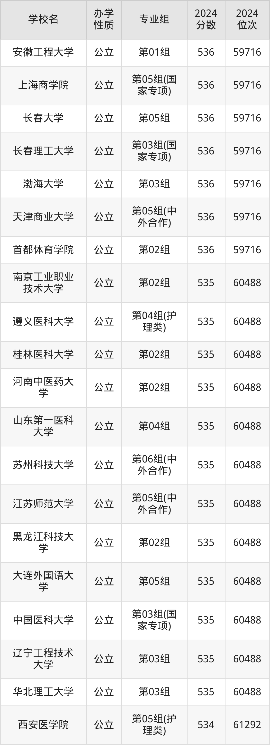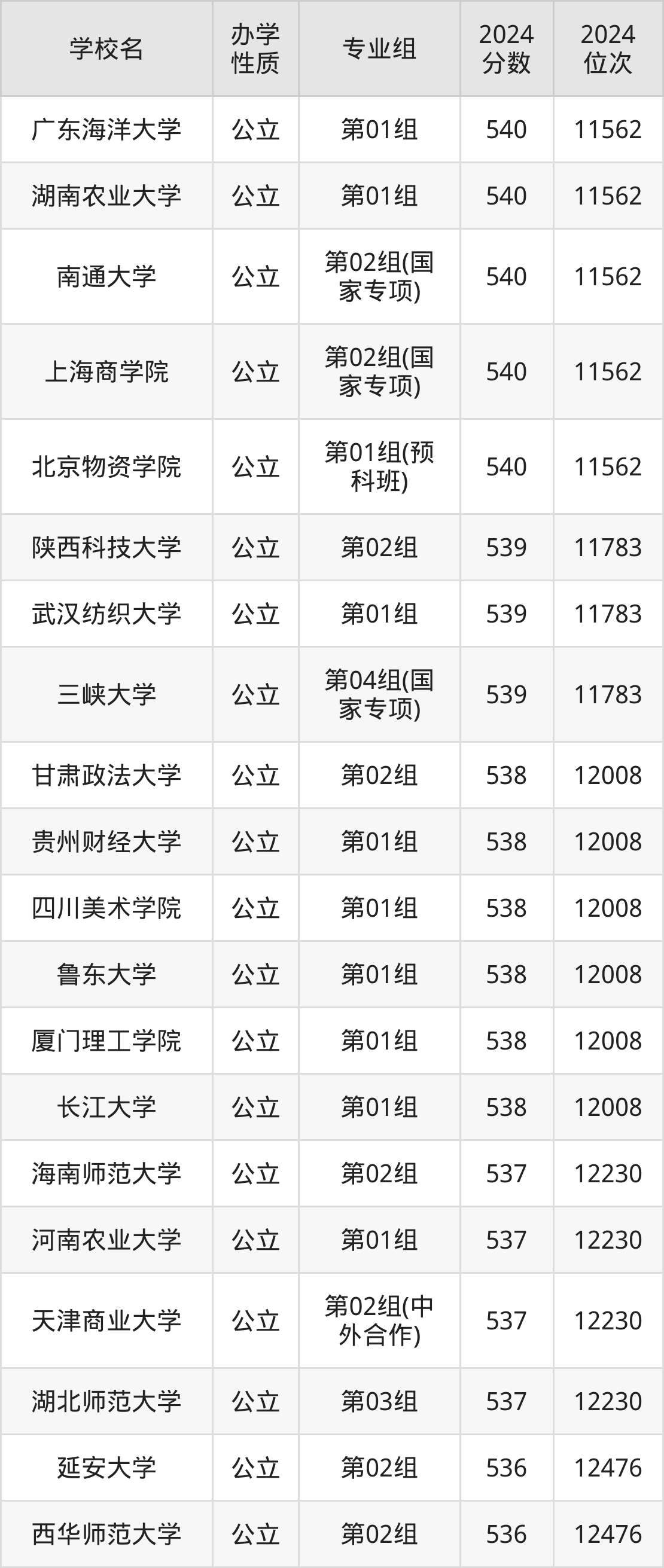 | 学校名 | 专业组 | 2024 分数 | 2024 位次 |