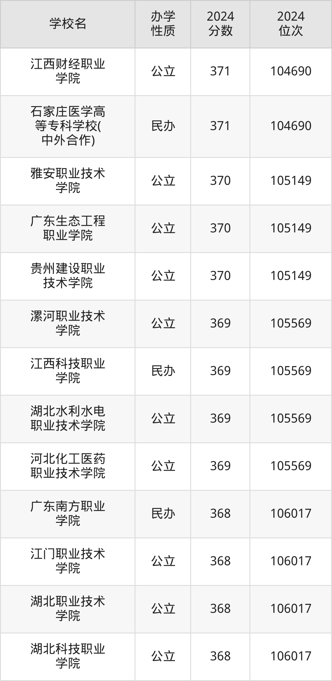 | 湖北水利水电 职业技术学院 | 369 | 105569 |