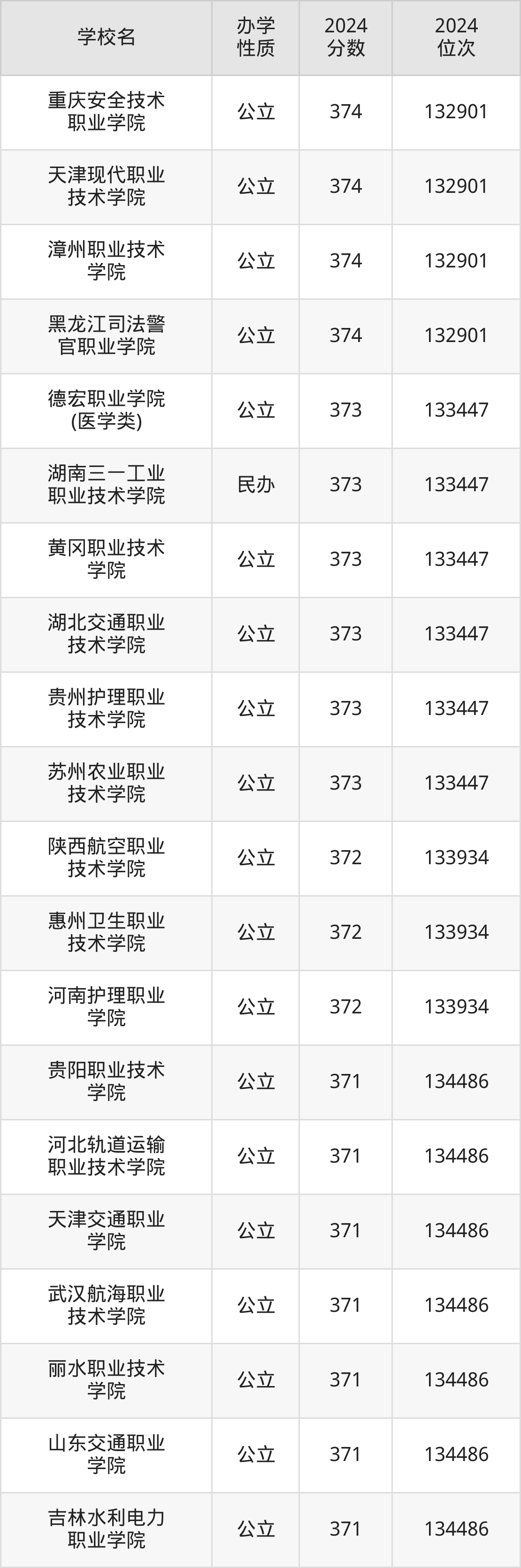 | 贵阳职业技术 学院 | 371 | 134486 |