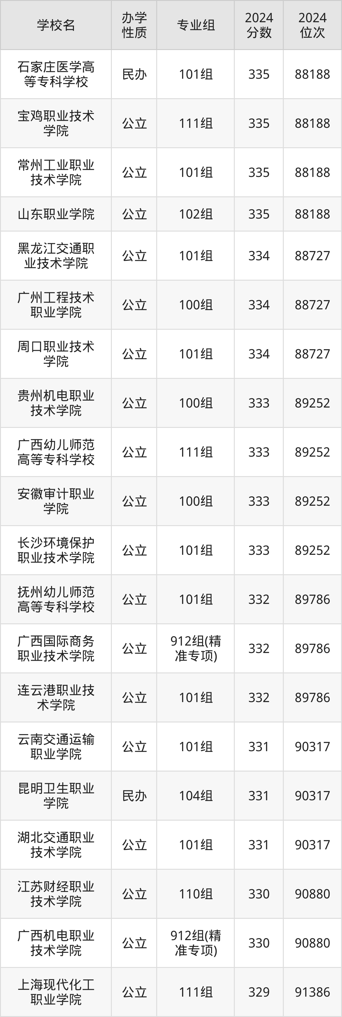 | 广西国际商务 职业技术学院 | 912组(精 准专项) | 332 | 89786 |