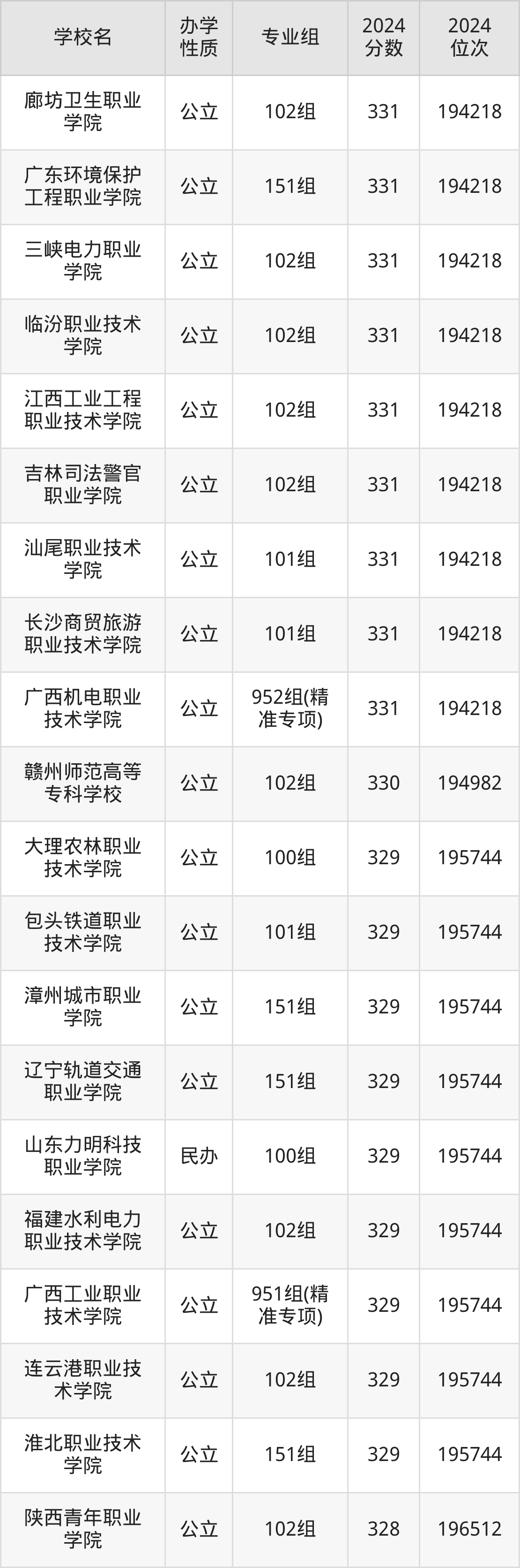 | 广西工业职业 技术学院 | 951组(精 准专项) | 329 | 195744 |