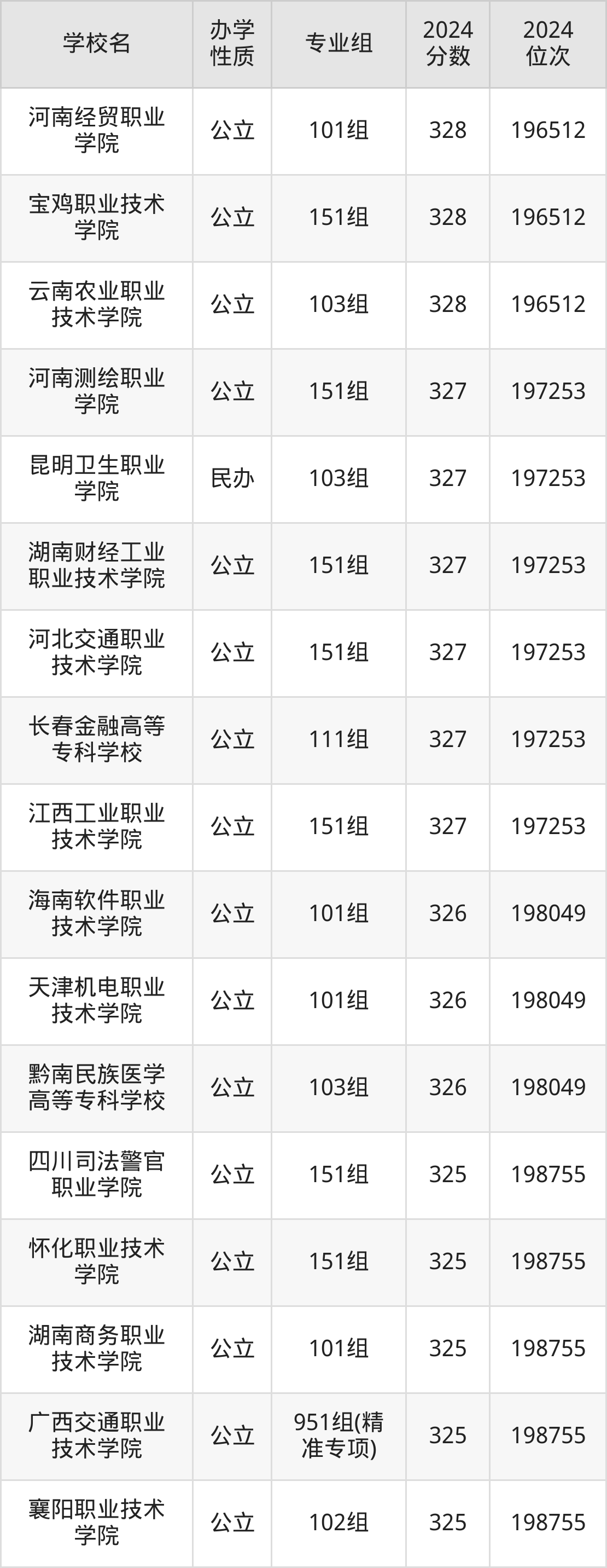 | 四川司法警官 职业学院 | 151组 | 325 | 198755 |