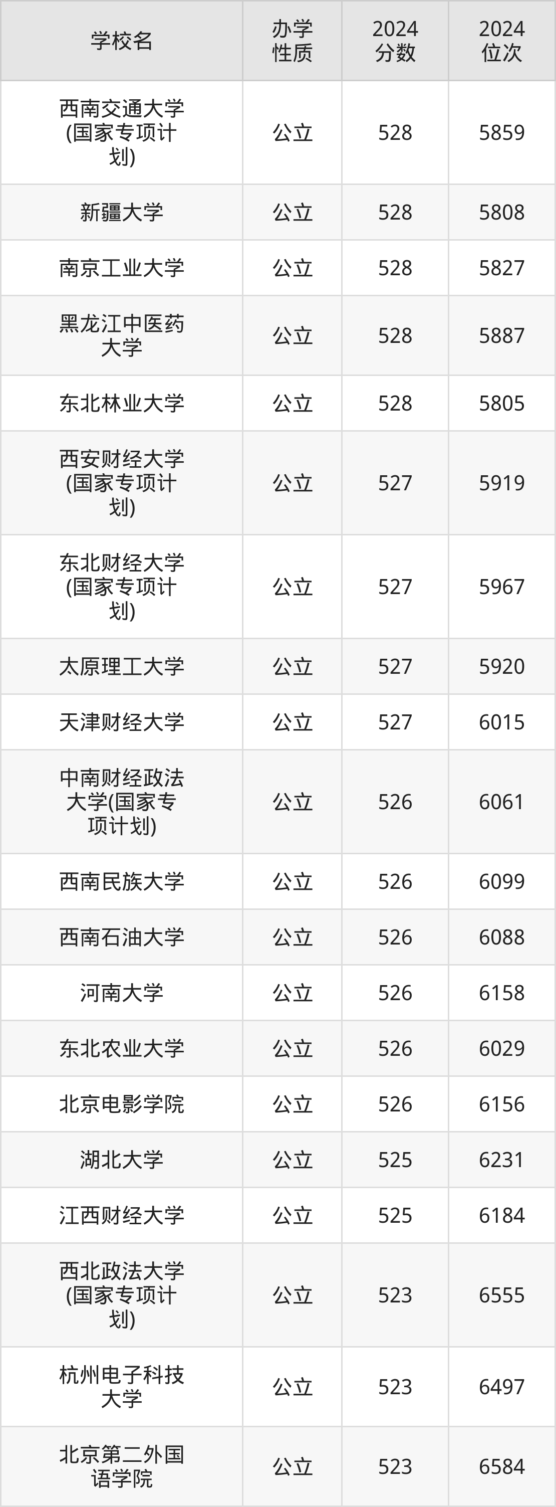 | 西南交通大学 (国家专项计 划) | 528 | 5859 |